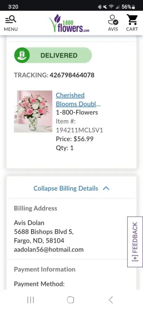 51/12 1-800-flowers text and email - your order has been delivered. No flowers were delivered.