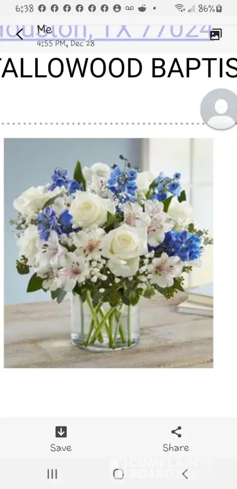 I ordered flowers for a relatives husband's funeral. I spent over an hour picking the flowers, and chose the largest version. What I ordered and what I received aren't even close, and half of the received flowers look half dead. I am posting a pic of the almost all white flowers I ordered that have pops of blue. The flowers received were mostly green, with half of the flowers in terrible shape. I am so embarrassed! When I called customer service to complain they hung up one me not once, but twice! I'm livid. NEVER use this company.