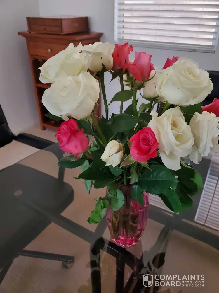 My family ordered Mother's Day flowers that were not delivered until the Thursday after Mother's Day. Delivery was a disaster and flowers were dropped at the wrong address without any kind of moisture. This is Las Vegas with 90 degree weather. Some white roses opened up but none of the pink ones. Substandard products that I will never recommend to family and friends and my family was very disappointed in the ordering process and lack of concern over late delivery.