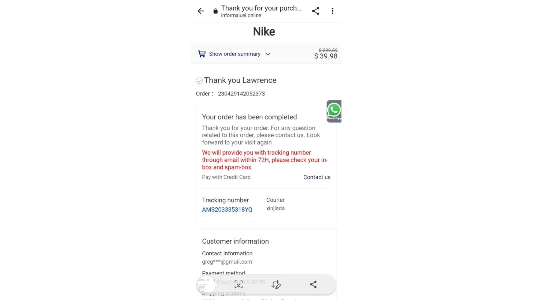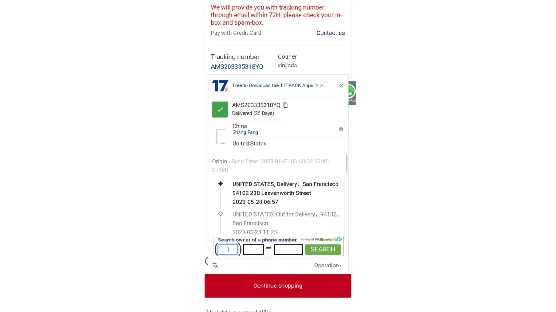 I was home all day when when 17track when I had a notification that says it was delivered but it wasn't my email greglawrence559@gmail.com my phone [protected] my date it was delivered on track number order number every thing is there on the screen shot