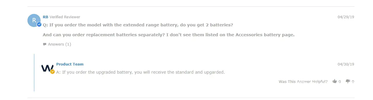 Q: If you order the model with the extended range battery, do you get 2 batteries?Â