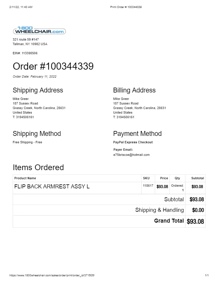 Poor Service and Unprofessionalism: My Experience with 1-800Wheelchair.com
