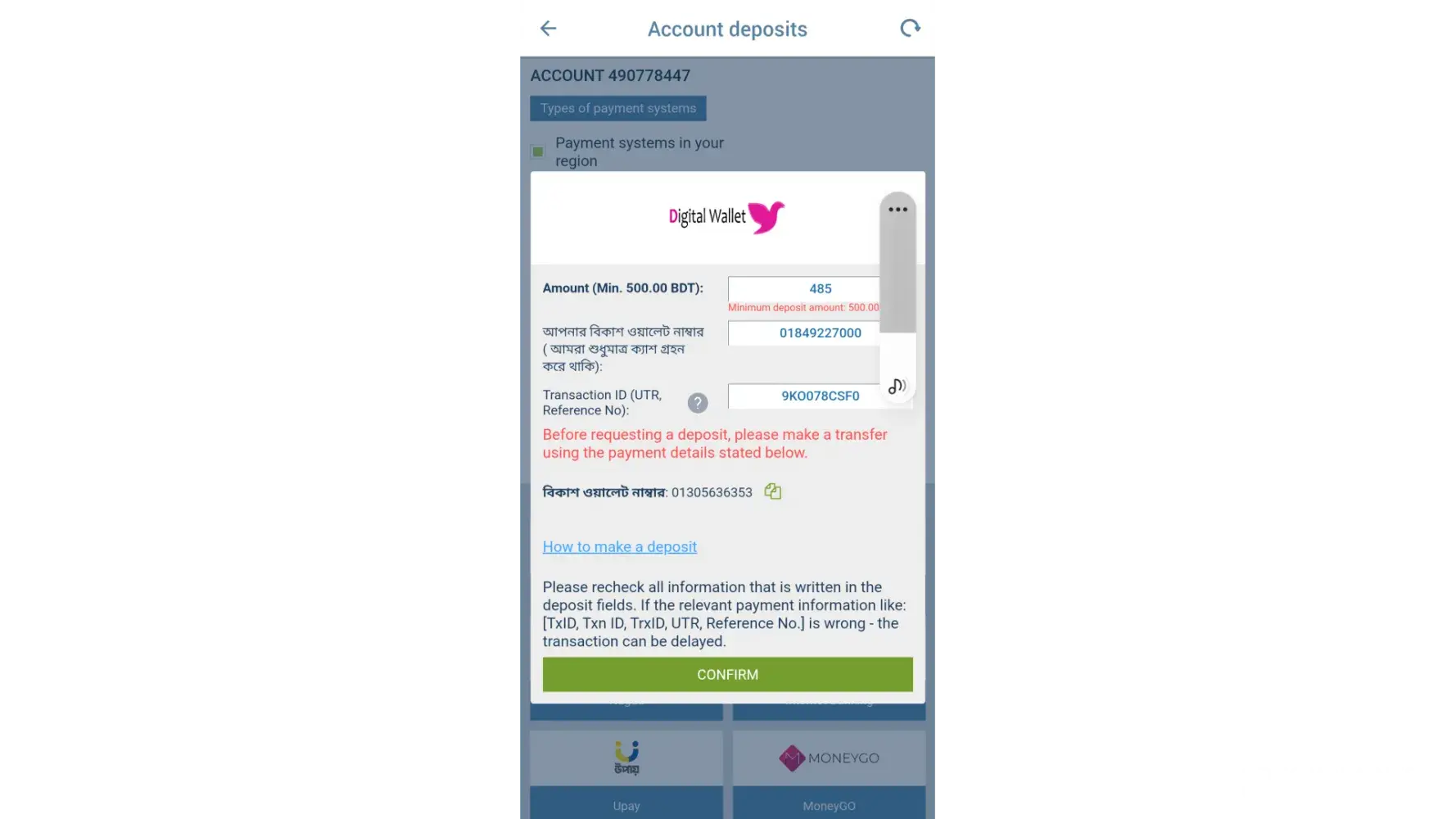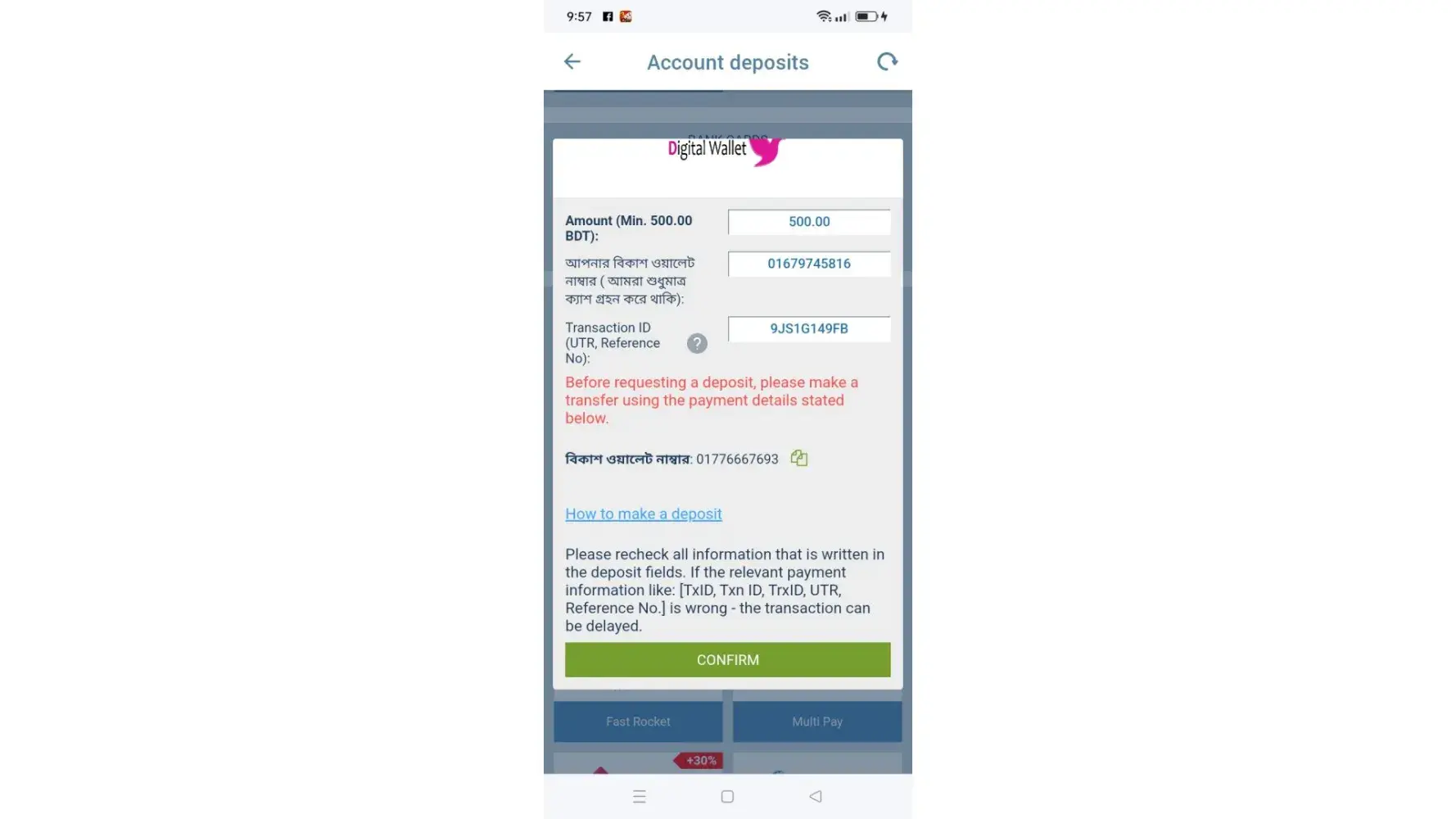 উপরোকà§à¦¤ তথà§à¦¯à¦—à§à¦²à§‹ দেখে আমার ওয়ালেট ঠটাকা জমা করার জনà§à¦¯ অনà§à¦°à§‹à¦§ করা হলো