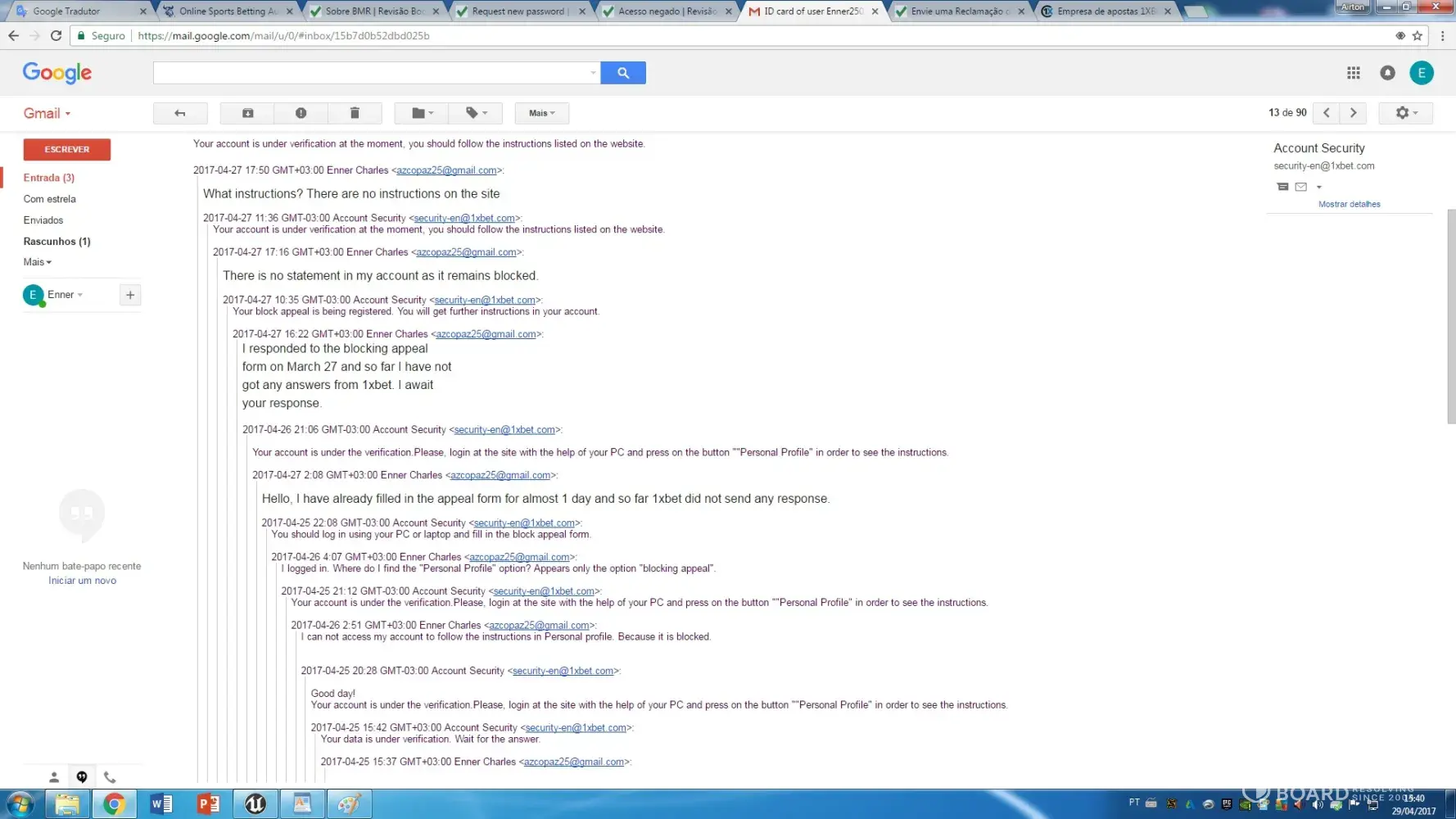 I contacted all email on 1xbet still no reply