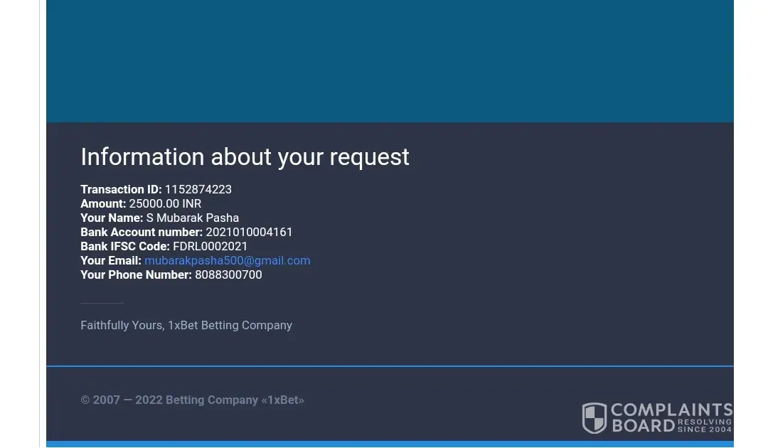 I will file the compliant against 1xBet