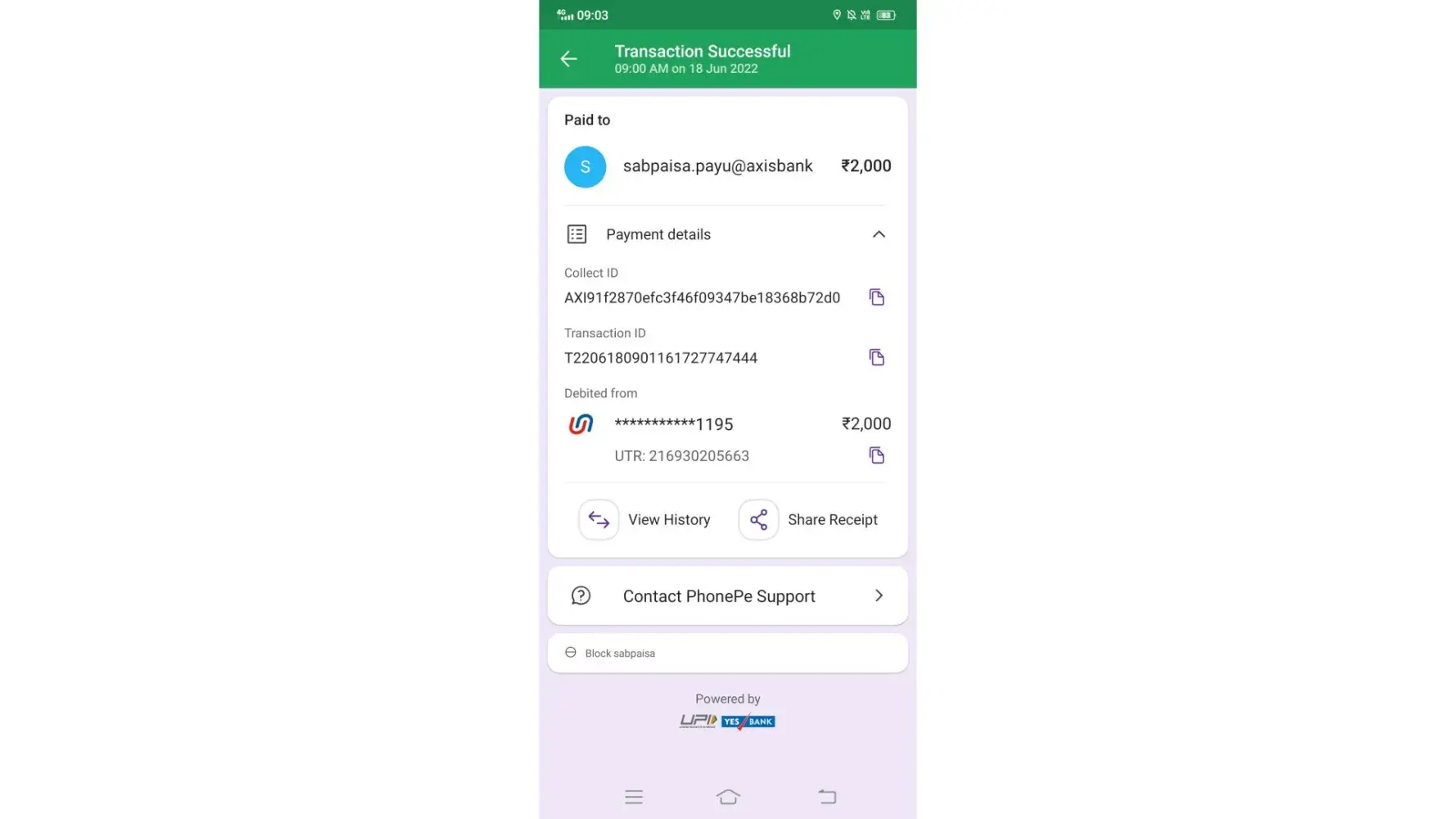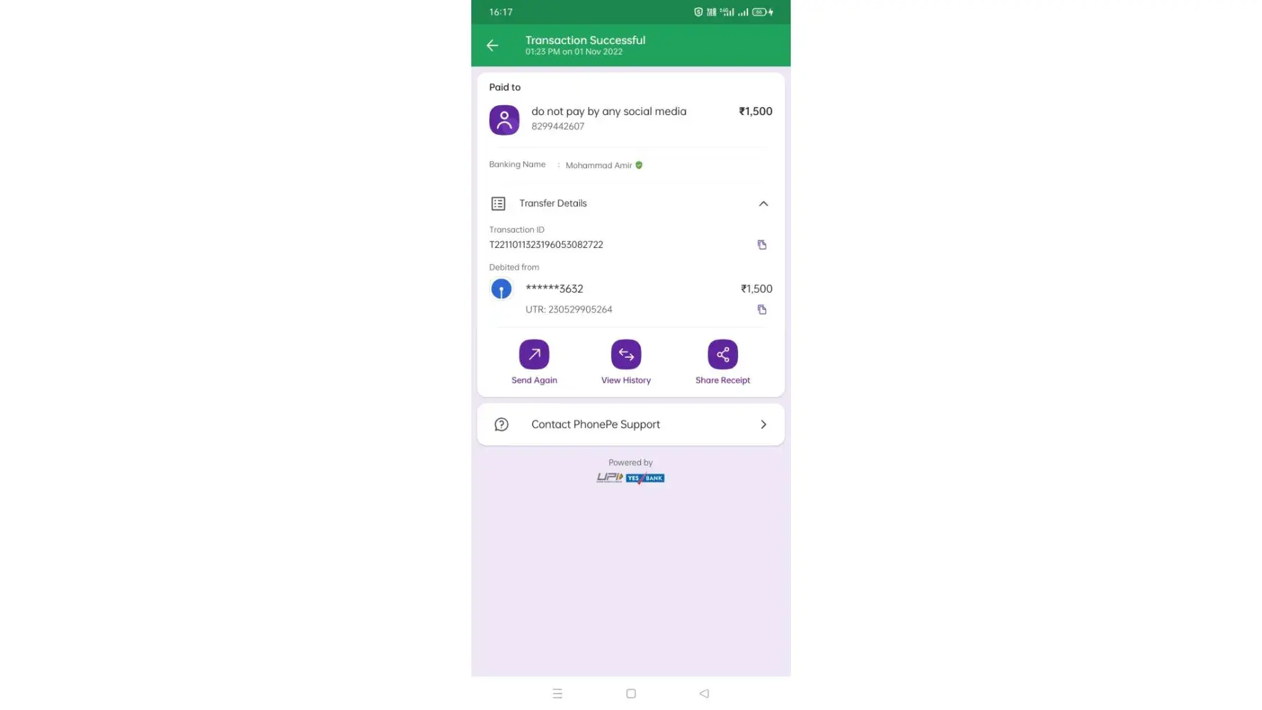 I deposited sum of 350 through phone pe but didn't get credited to my bet account.It says it will be credited within 5 hours but still didn't get credited.Please resolve this ASAP. I have attached image of transfer also ...