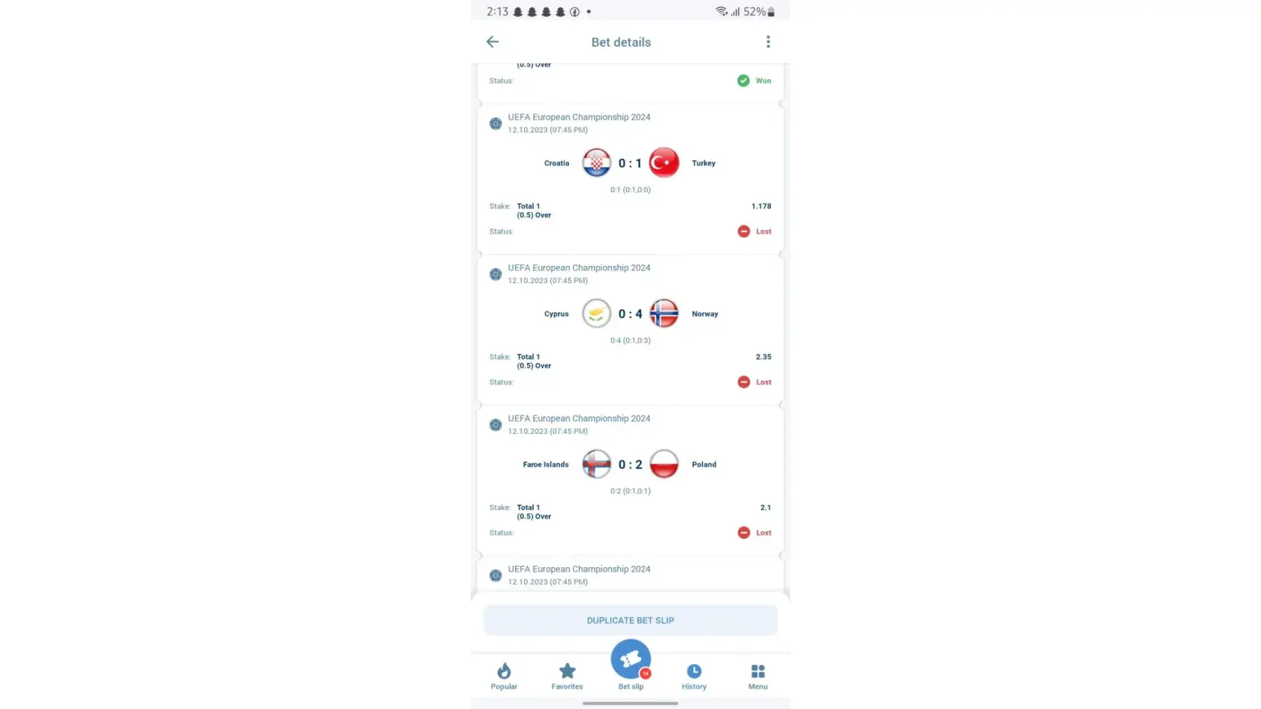 I played 3 games over 0.5 which all came but it is on their platform that I lost the bet