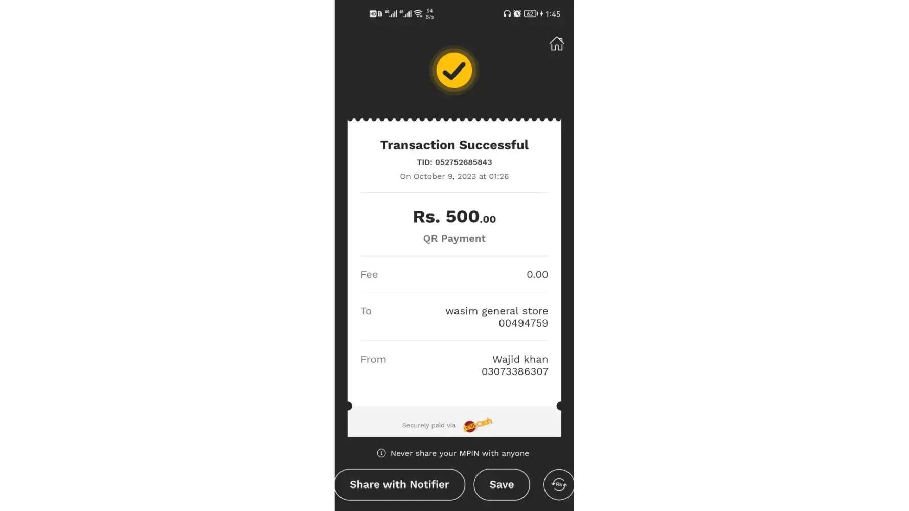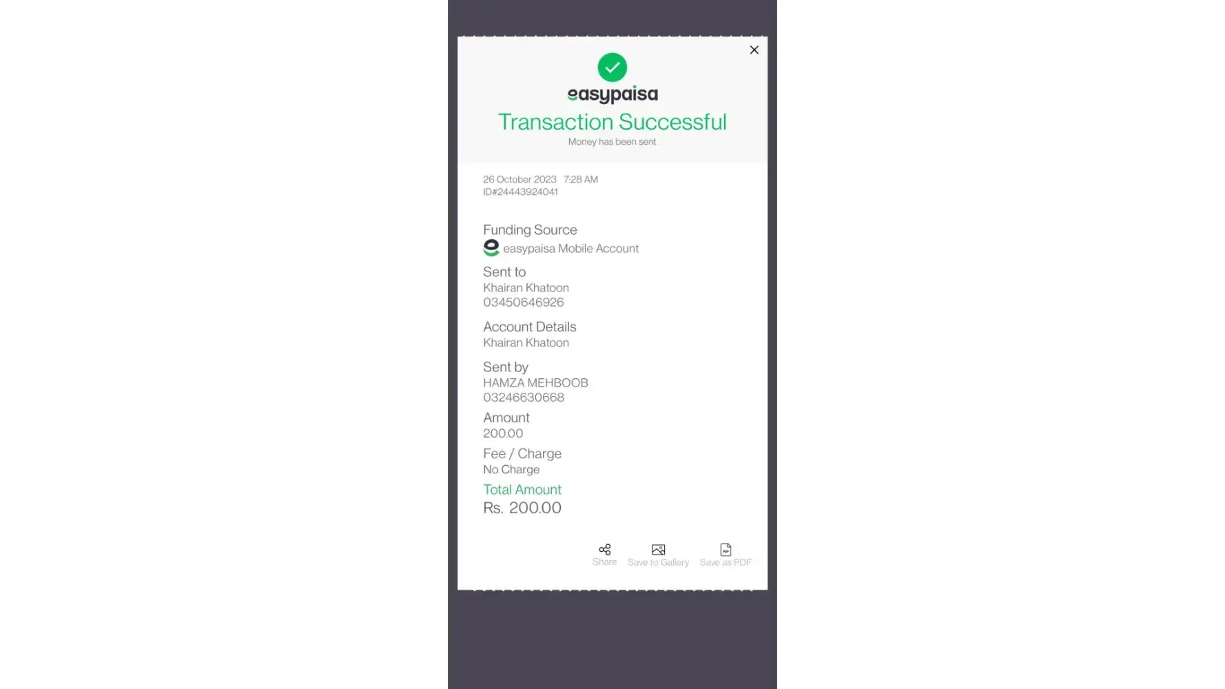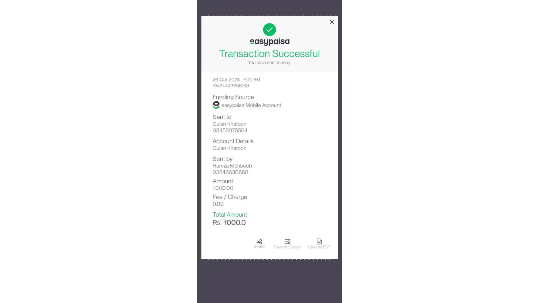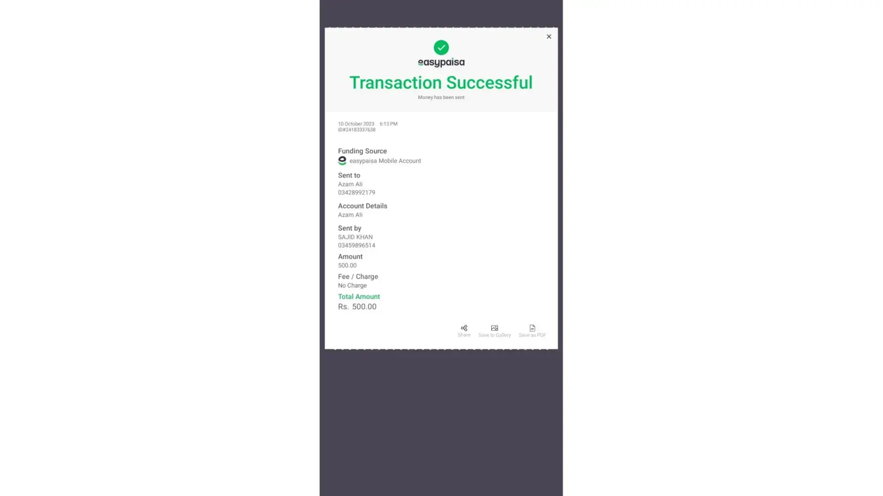 I transfer to easypaisa account of= AZAM ALI Easypaisa account