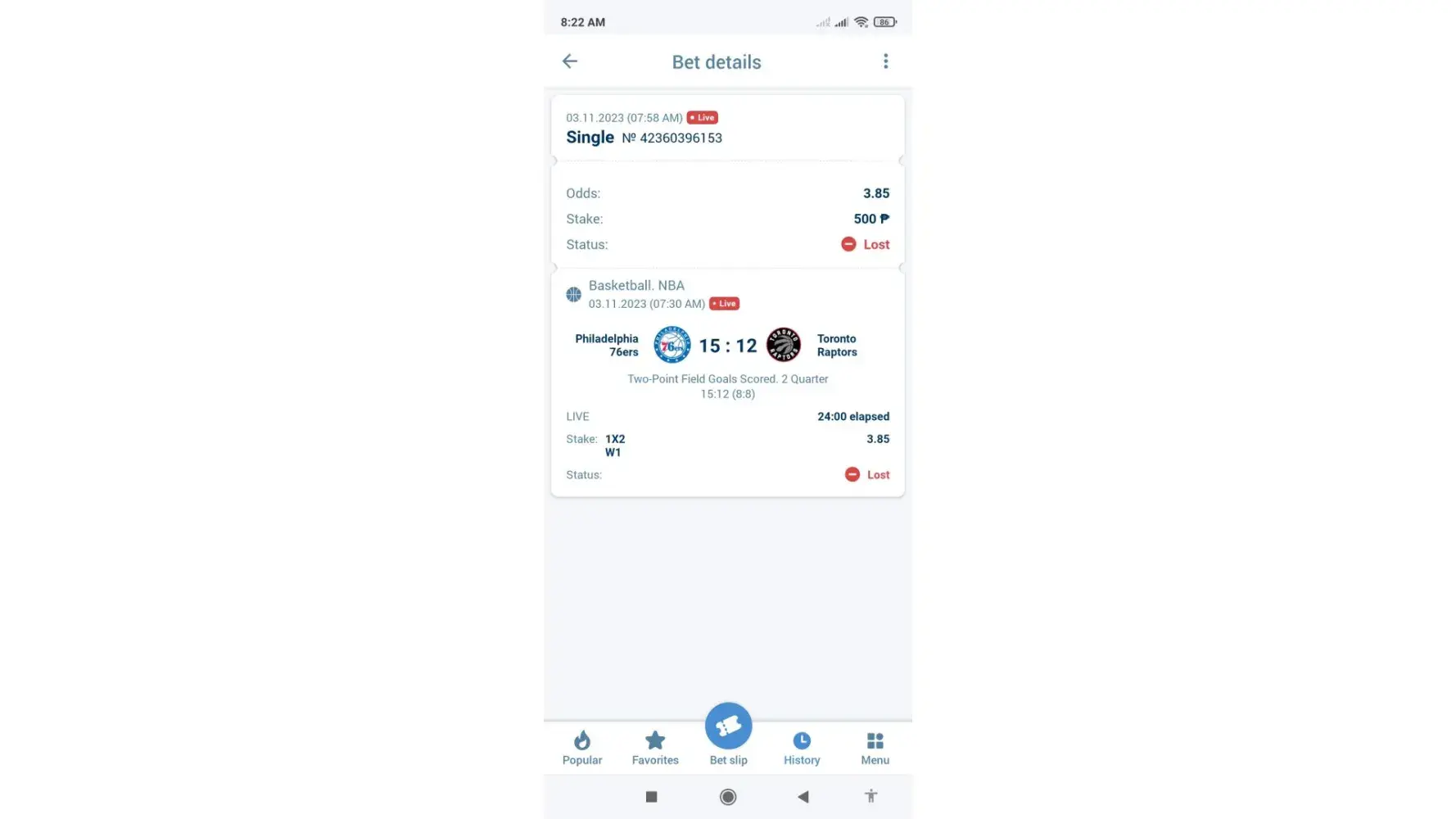 I bet at the philadelphia 76ers game 2nd quarter 2 point field goal scored, november 3 , 2023