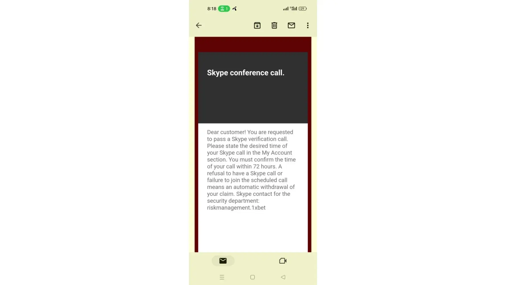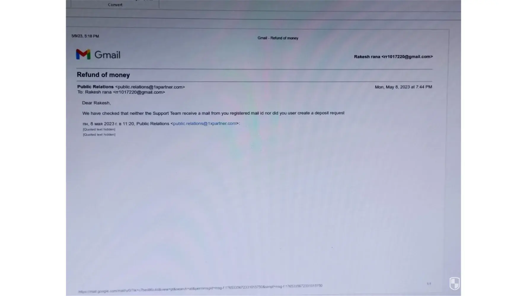 As you can see in the enclosed image. this is reply from 1xbet