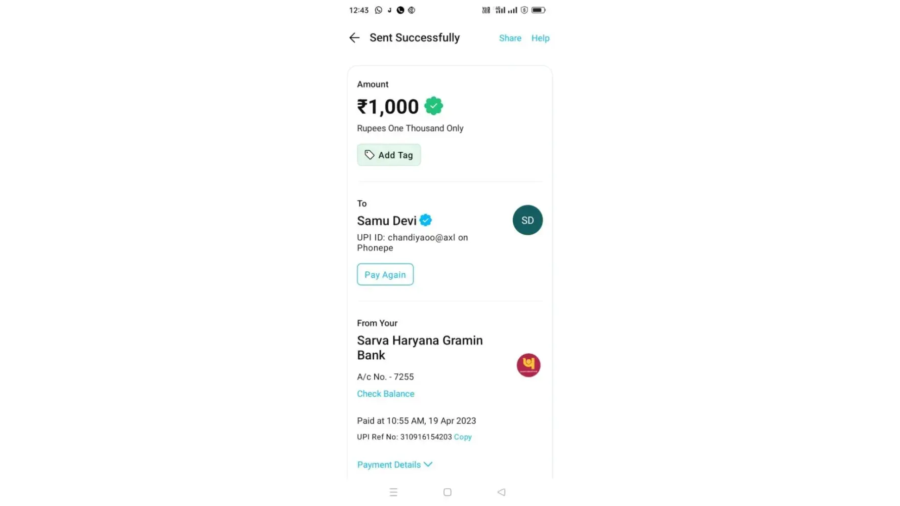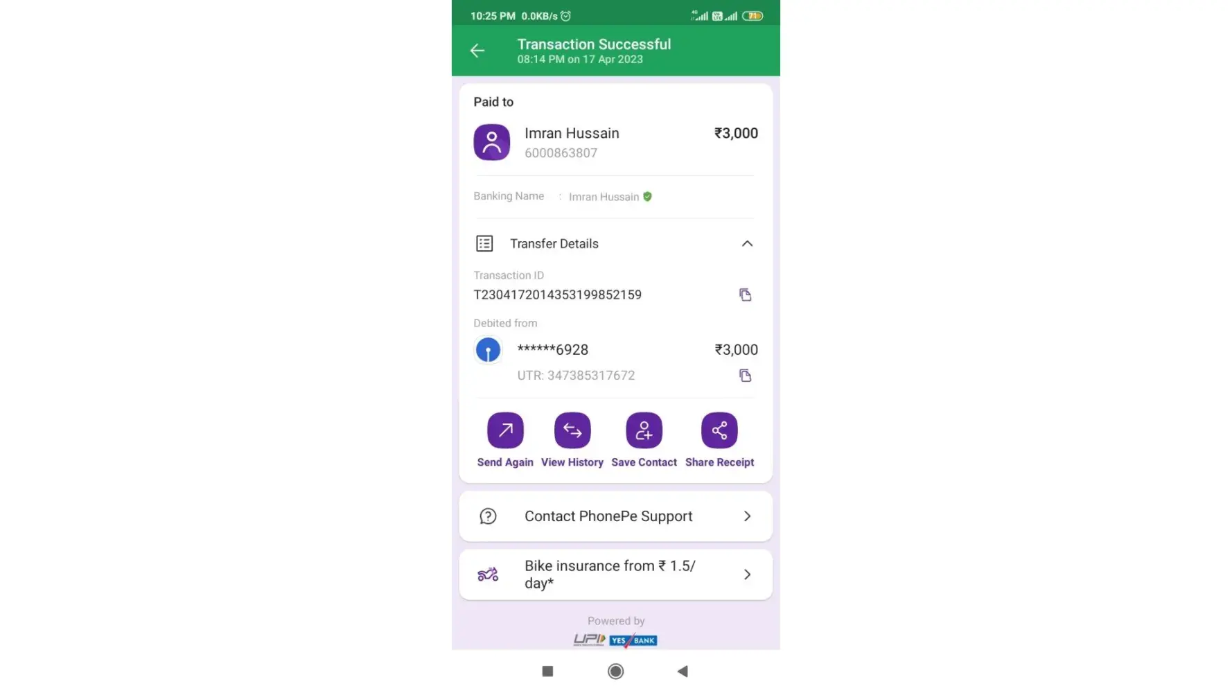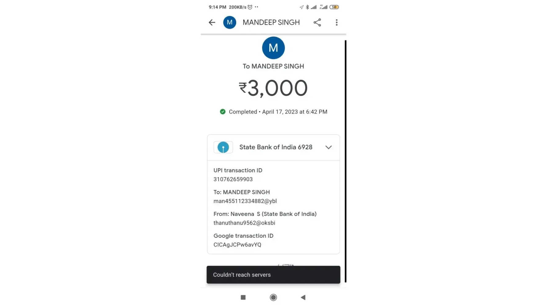 My transaction amount was 500, transaction I'd was the [protected].