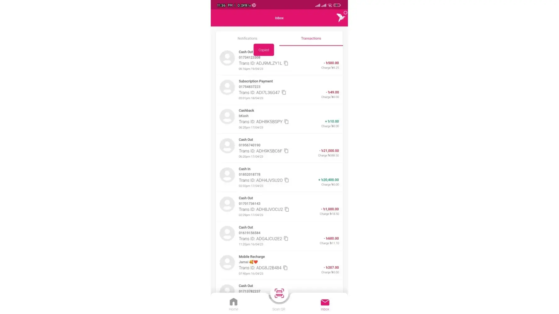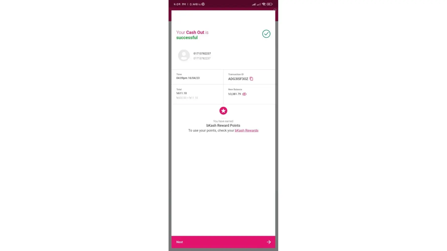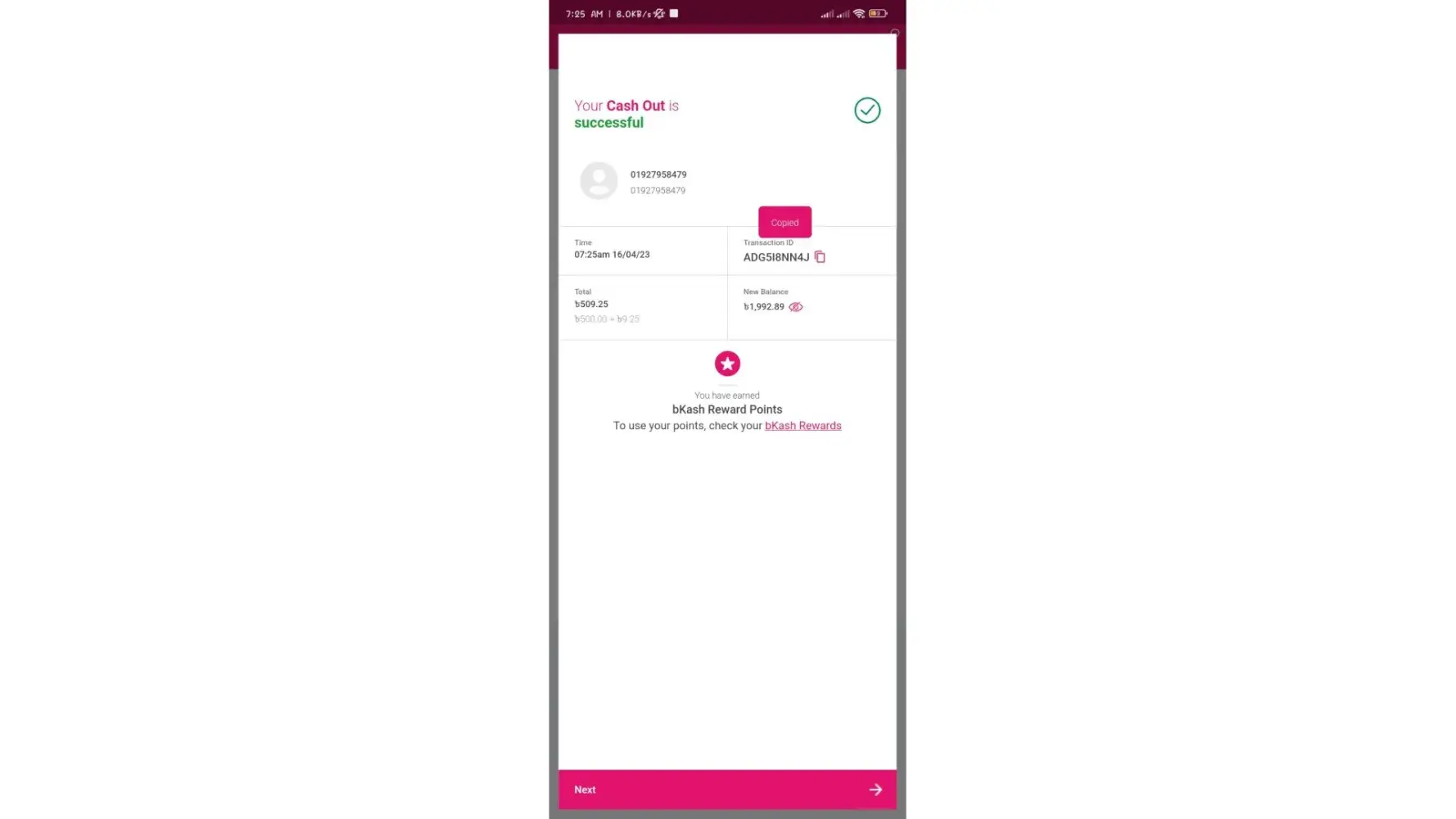 My transaction amount was 500, transaction I'd was the [protected].