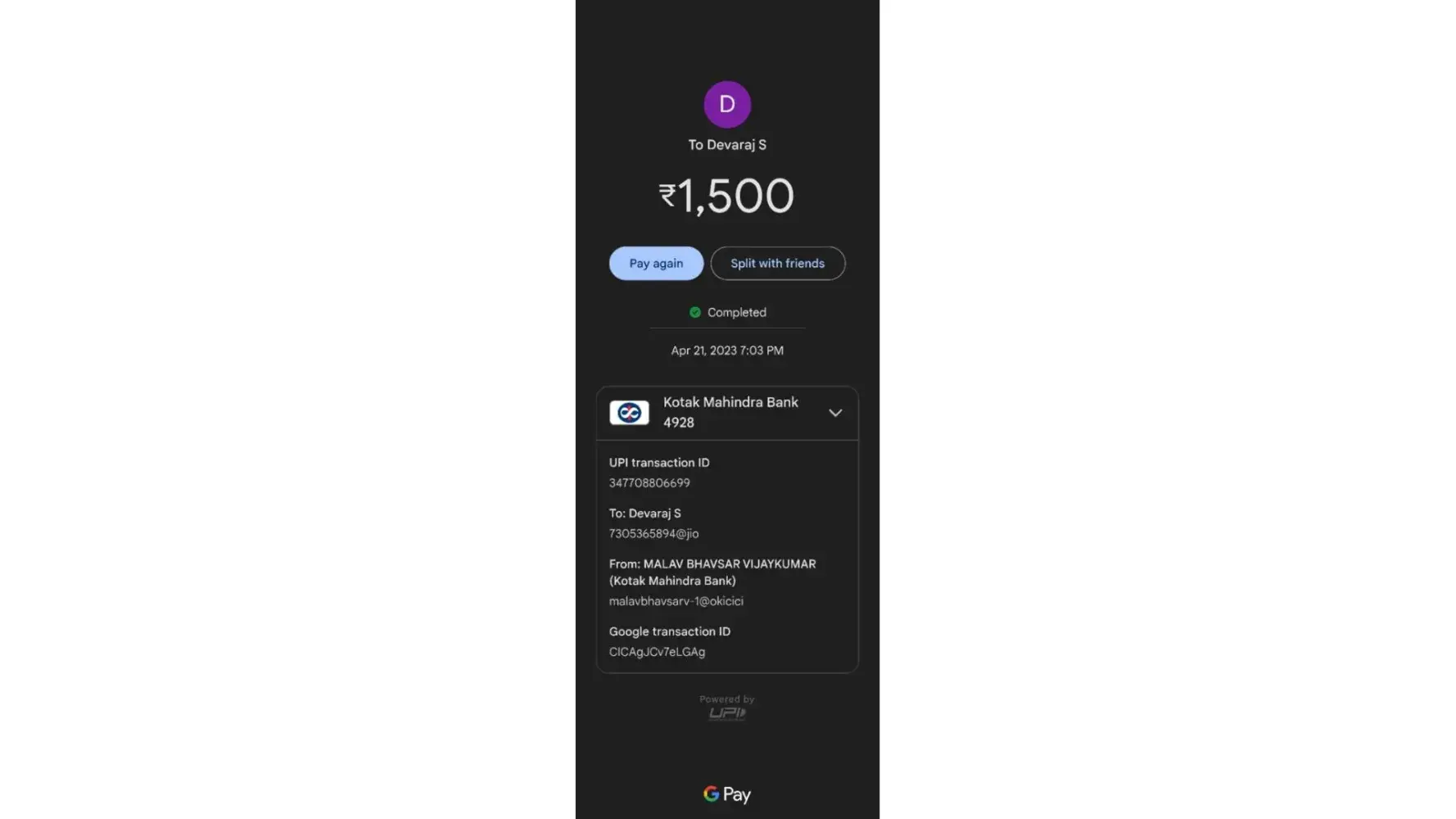 I've paid 1500rs 2 times on 21st April in evening one from Google Pay and One from Phonepe.