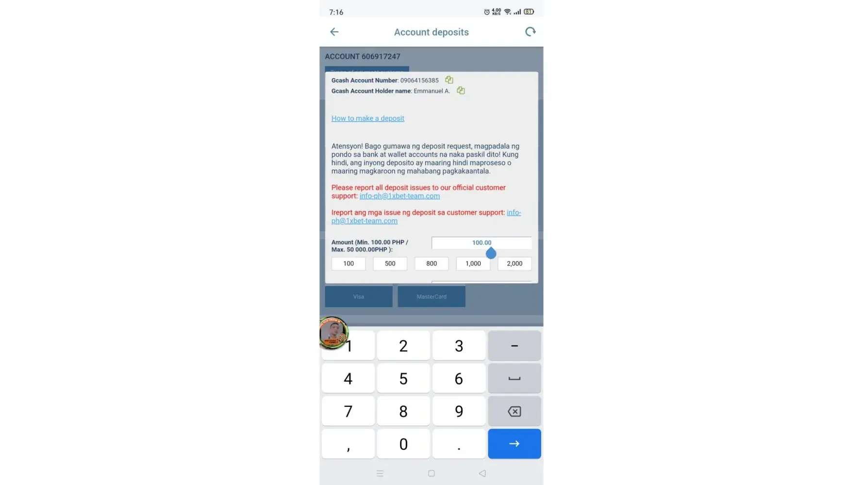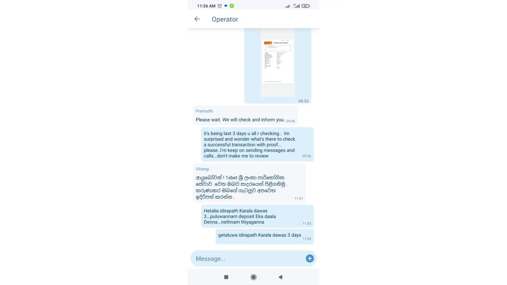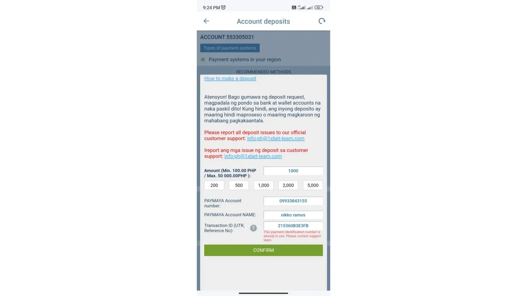 I made a deposit on 22/4/23...got the successfully transferred cyber receipt...but it not still credited to my 1x account...the customer care and online customer service keep on asking the same question..and several email Ive sent...still no response at all...Ive attached the proof of payment and customer care reactions
