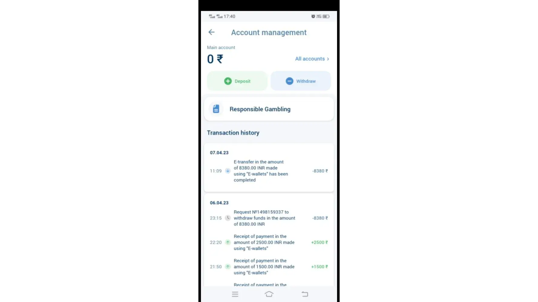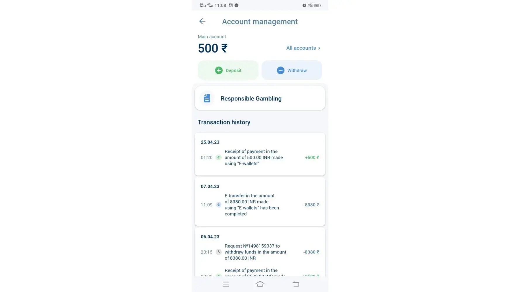 I jave withdrawn the amount of Rs8380/- on 06-04-2023 but still I haven't recieved. They are not even responding to my mail. I want my money back.This one of the worst gaming application.