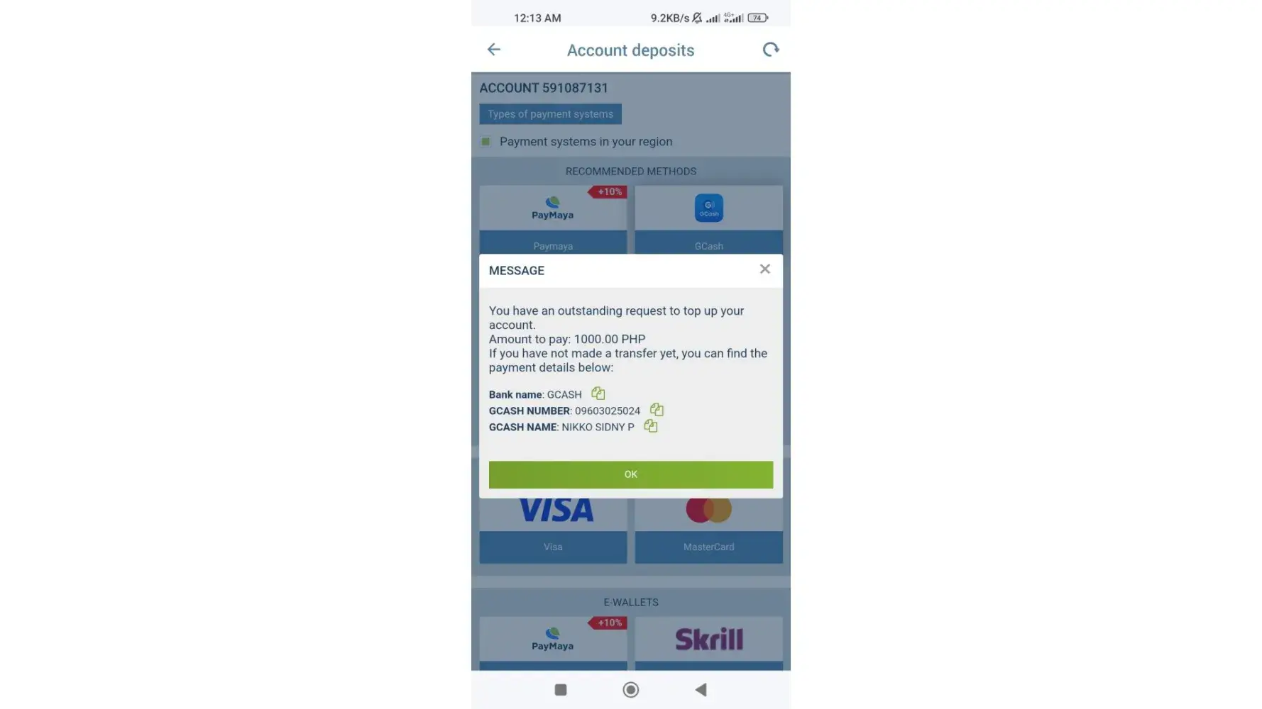 I DID A DEPOSIT 31.5 $