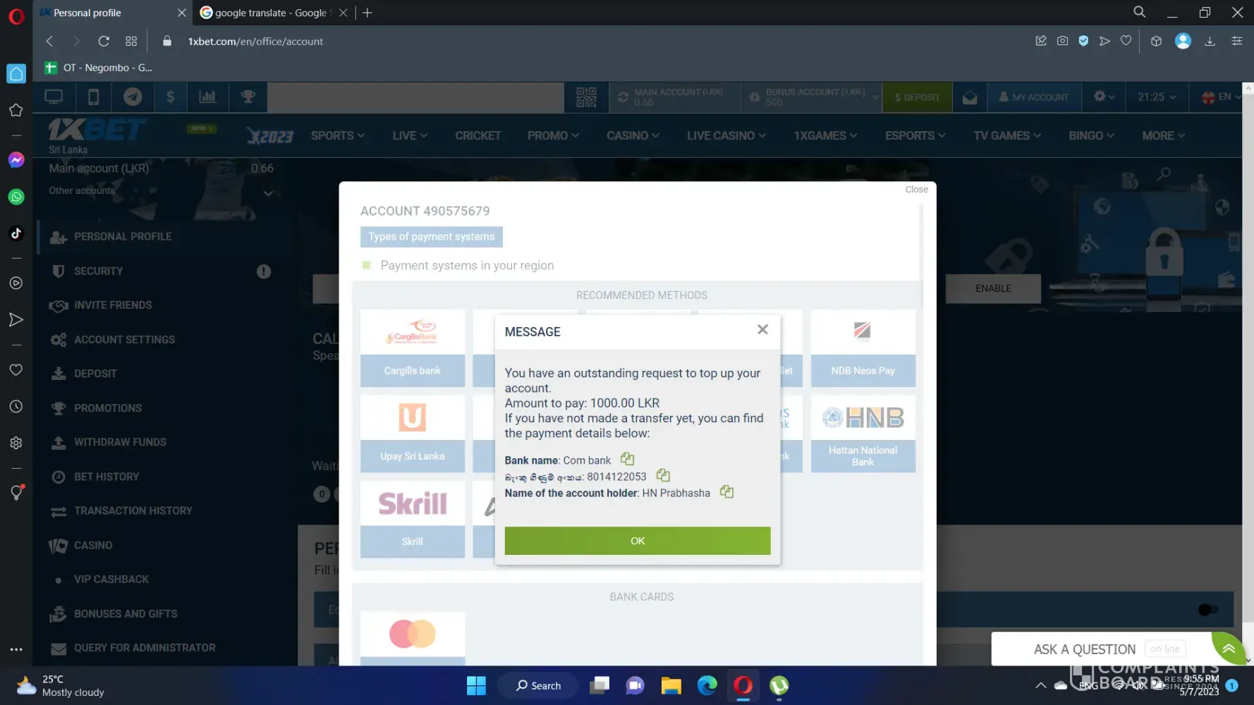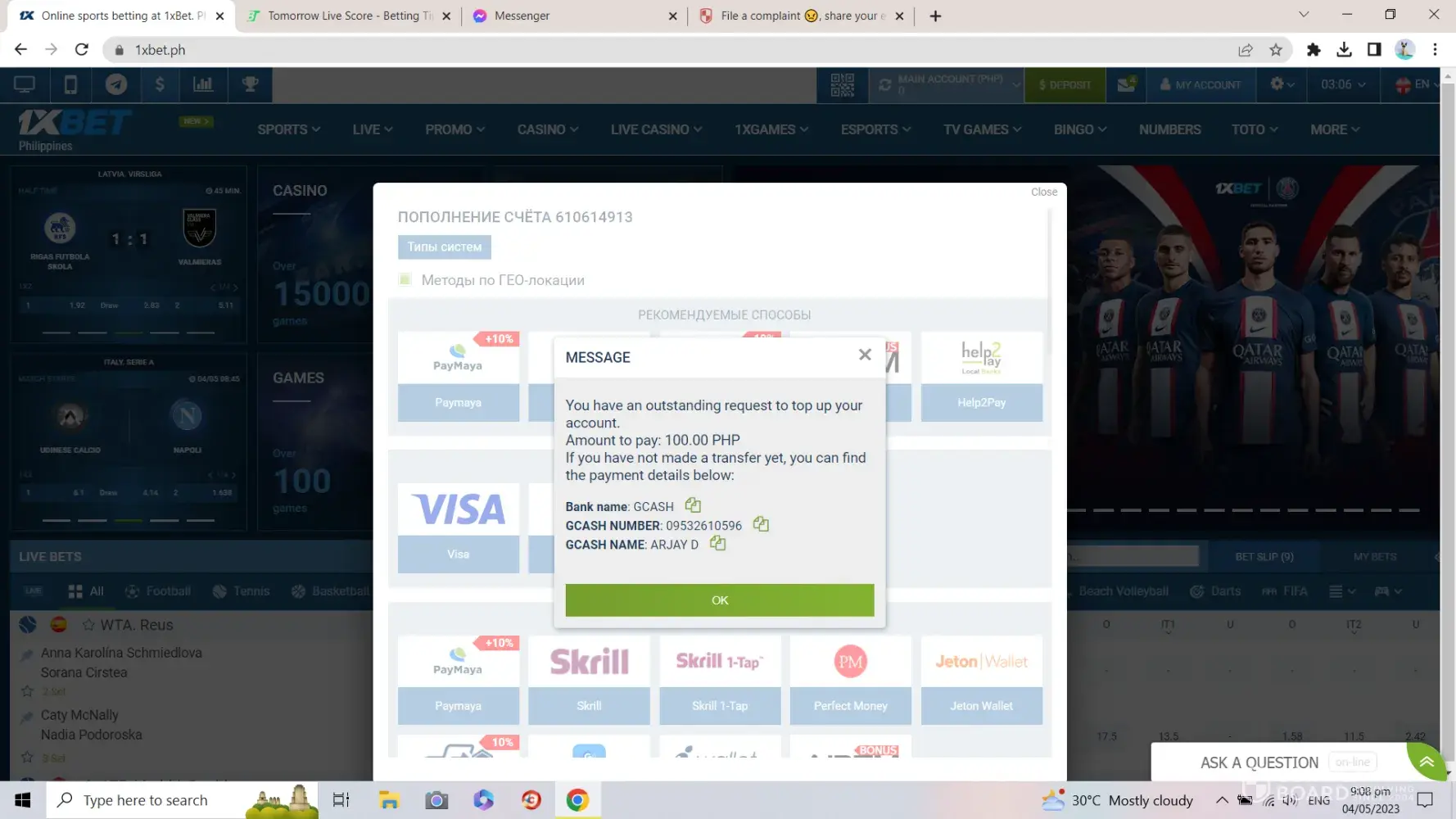 Sir i was send money 500 hundred to 1x bet bangladesh agent.but he Don't add this money in my gaming account. I send this money on 23 april 2023 today 4 may.please sir help me