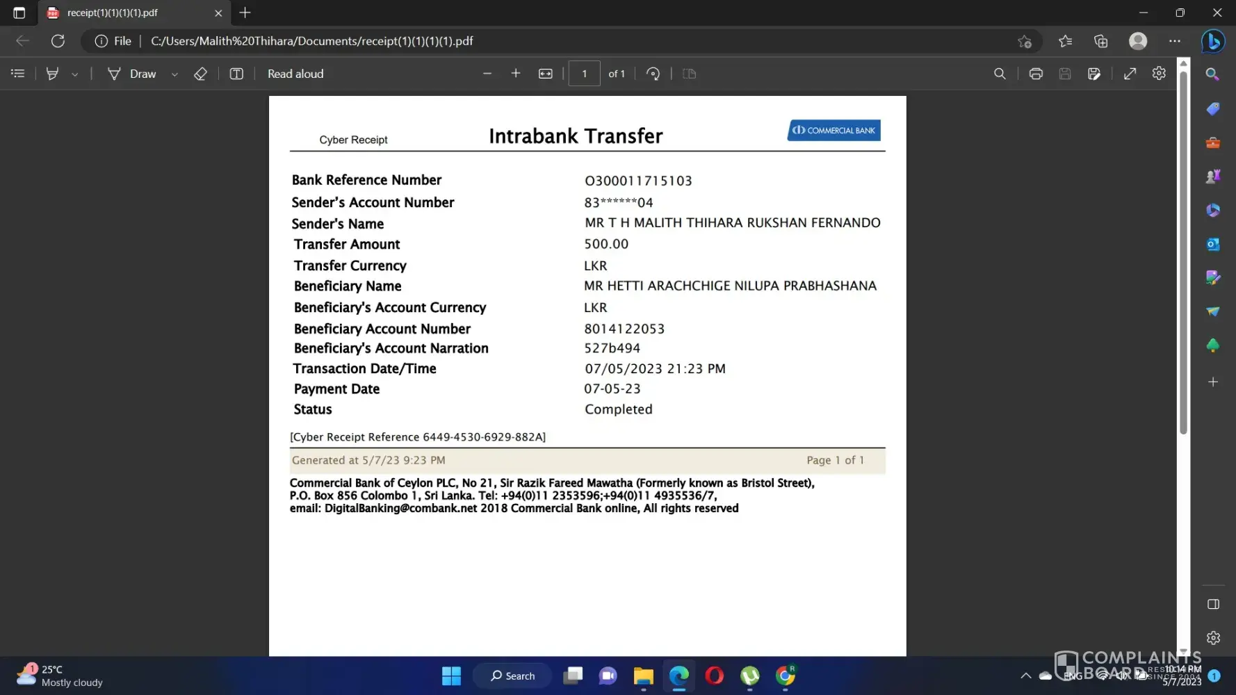 Complaint no [protected]