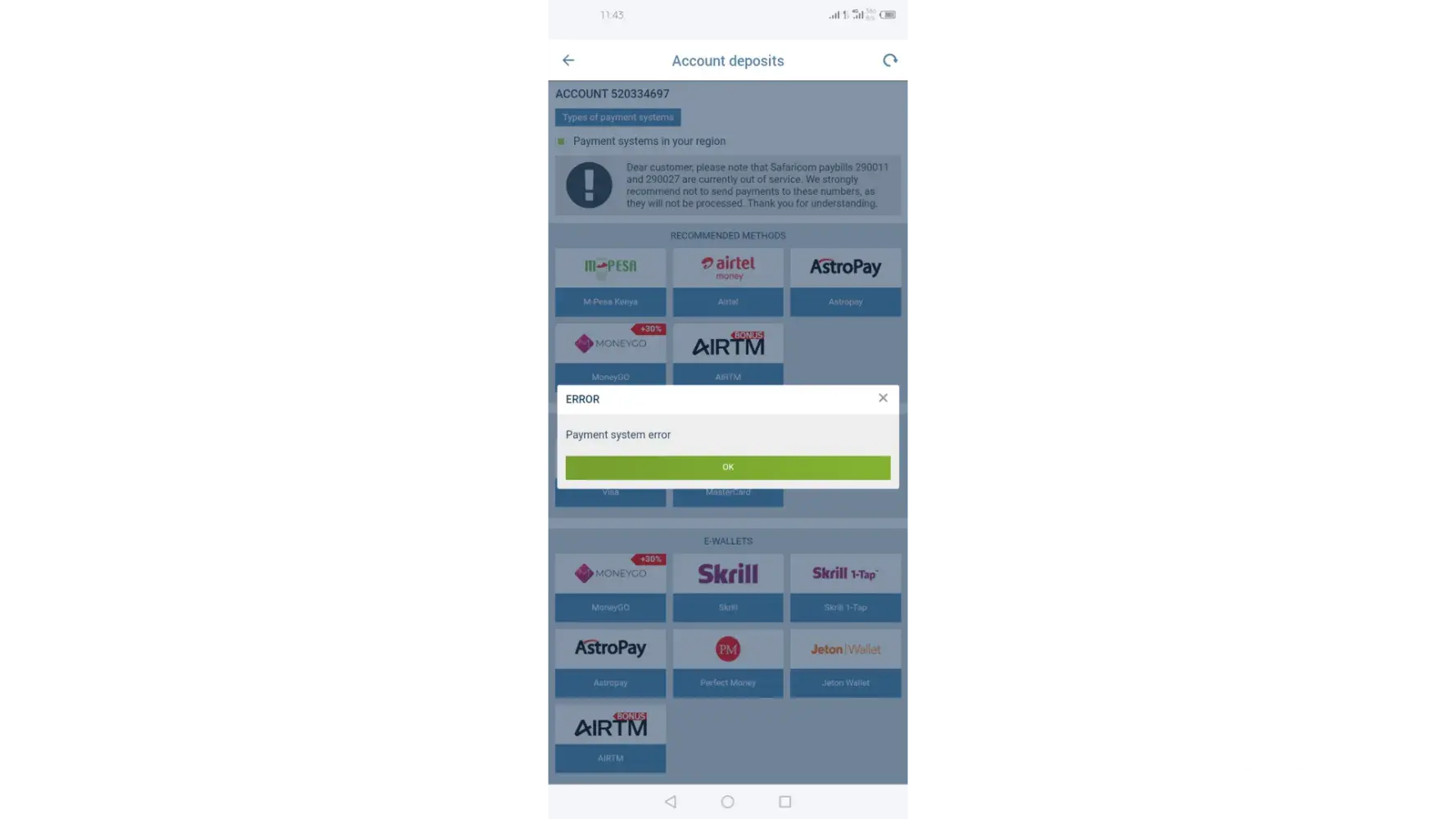 My account has not been depositing for a month now...when i try it always says error