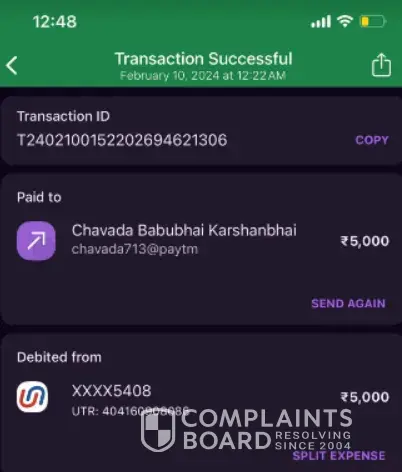 I am writing to address a concerning issue regarding two transactions I initiated through the 1xbet app, transferring 5000 INR each via PhonePe. The first transaction was made on February 10, 2024, at 12:22 AM to the UPI ID [protected]@paytm (UPI reference no. [protected]), and the second transaction occurred at 12:31 AM on the same date to the UPI ID...