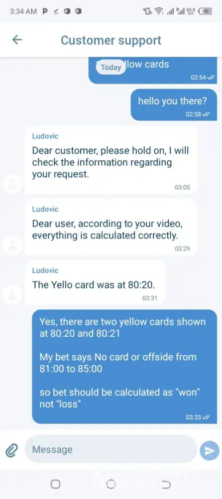 Desired outcome: These two bets got to be corrected - as win As my selection was total of yellow cards over 1.5And the result is 2 yellow cards Betslip number [protected] Betslip number [protected]
