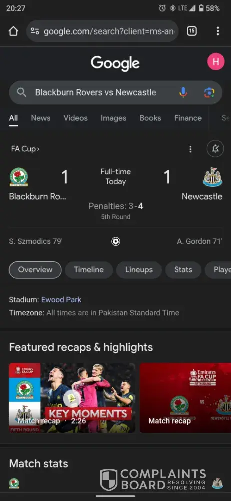 A match between Blackburn rovers vs Newcastle of FA Cup [protected])