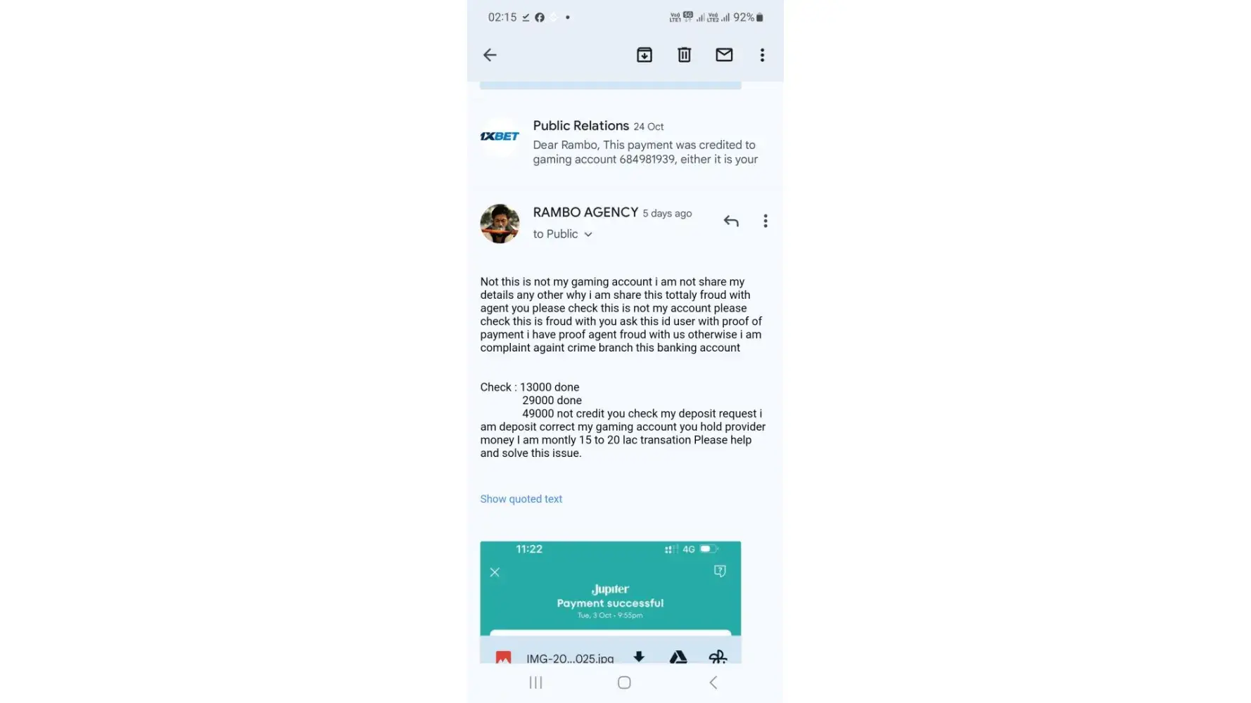 Attachment: screenshot of payment, bank statement, deposit video recording from another mobile , bank confirmation letter about the deposit.