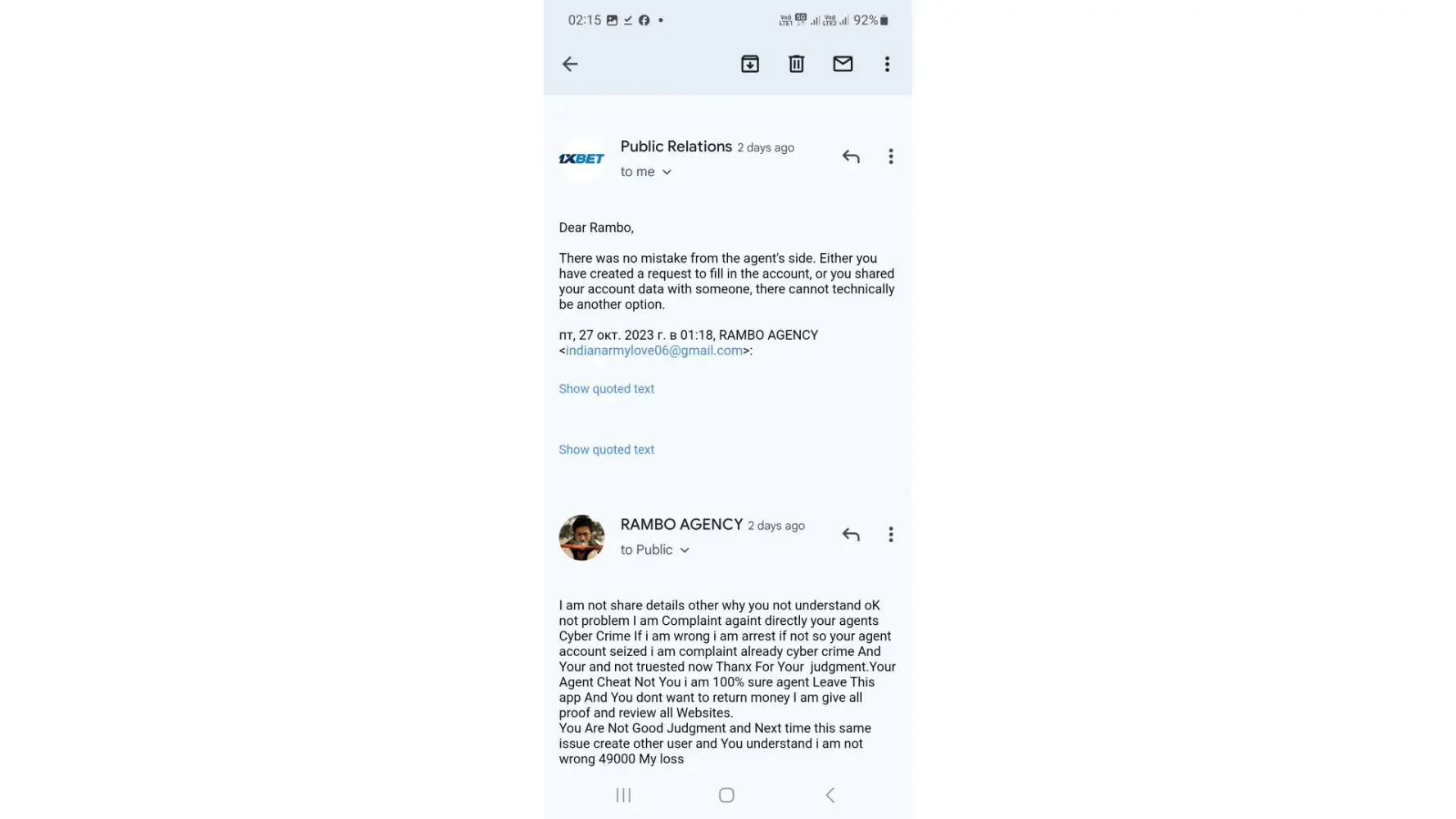 They have credit my money to some other account and saying I have two accounts. Agent looted the money or a fault is made or scam is going on. Agent 1xbet froud used self account and cusotmer money deposit self account this is new froud not help 1xbet also its cheap so please user beware of this new 1xbet scam Anyway. I have all proof of payment, they have credited to some other account. Public relations are not responding or they are repeating what the payment department saying. MONEY WILL BE GONE. So stay away from this FRAUD. If I am wrong so please give me proof of other id Withraw name and details location I am self track and other ids user Give me proof only who is person and I am sure this is your person your agent So send me details