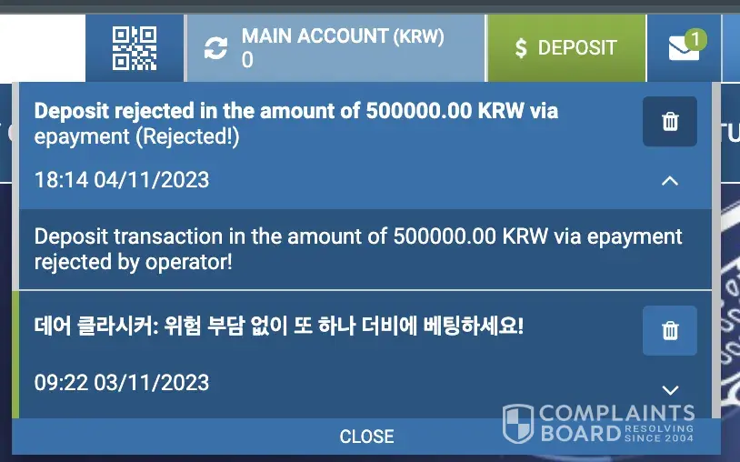 I deposit 500,000, korean won. But it was rejected but deduct on my account