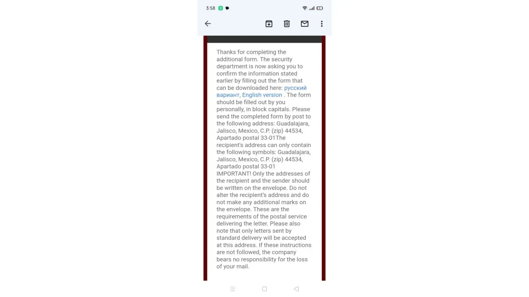 But nothing happened or get any email from security Department about progress of my account problem solution.