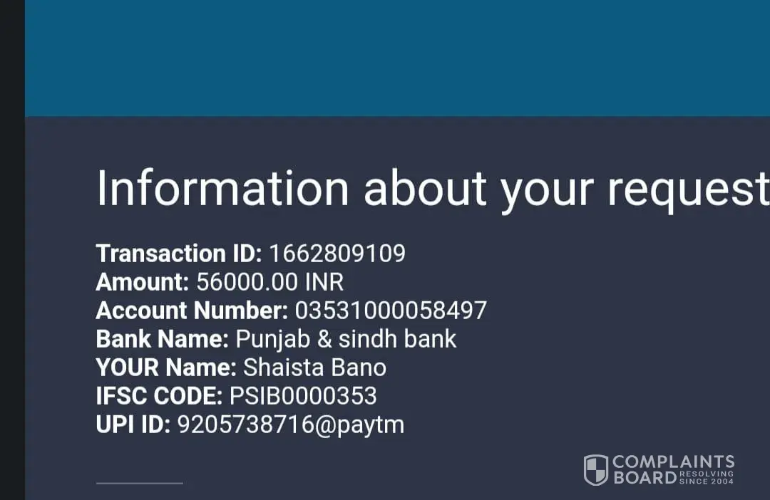 To bring to your attention, I have shared my account statement multiple times, I have not received the amount. If you have successfully shared it as you are stating then kindly share the proof or else I will file a legal law suit about the same as the amount is 25k.