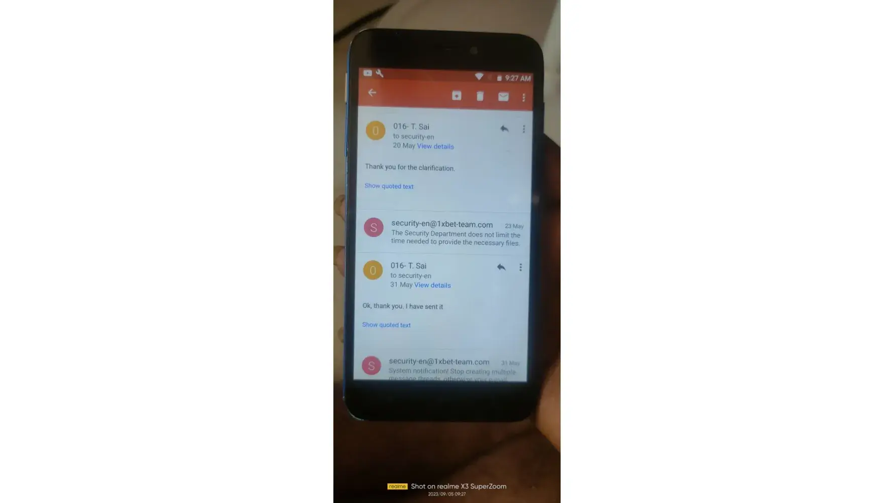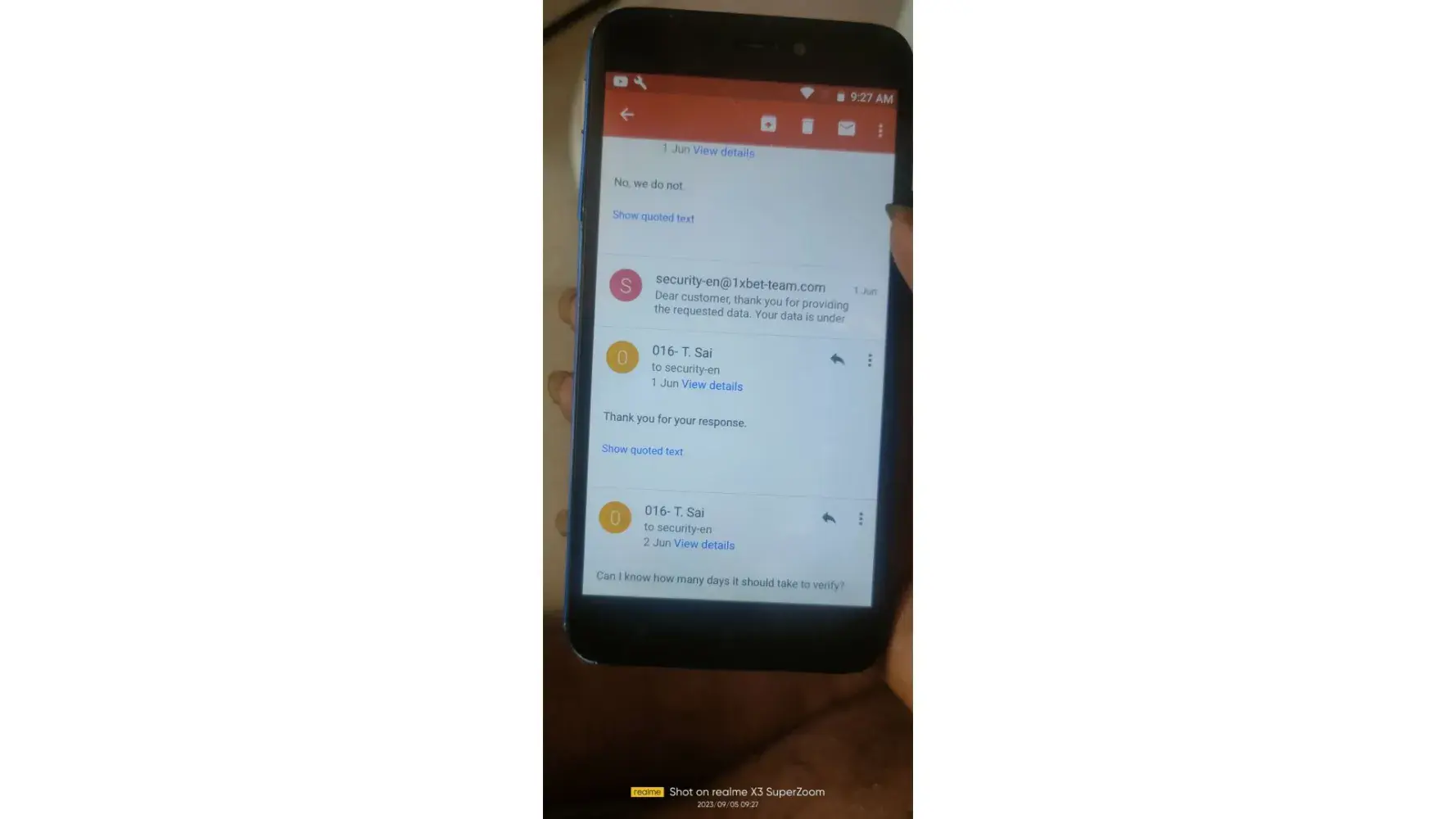 I deposited money and started betting, then I discovered that I could not withdraw. After that, they asked me to contact the security office via email to verify the account.