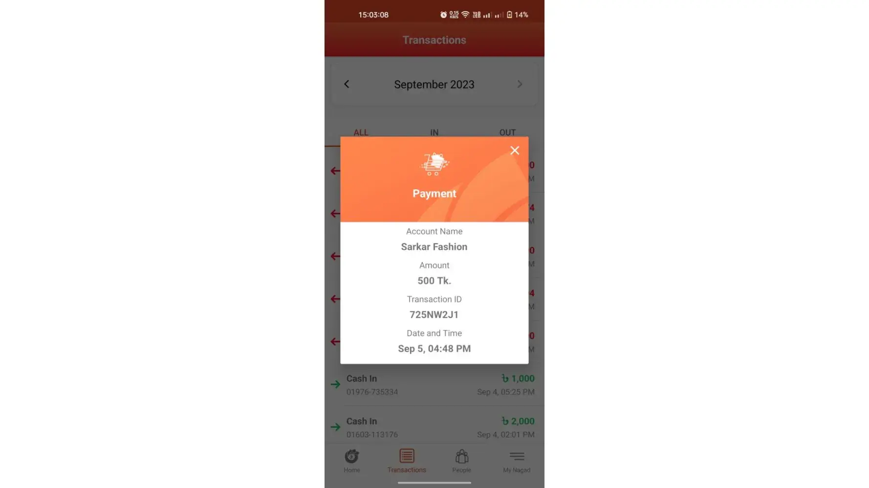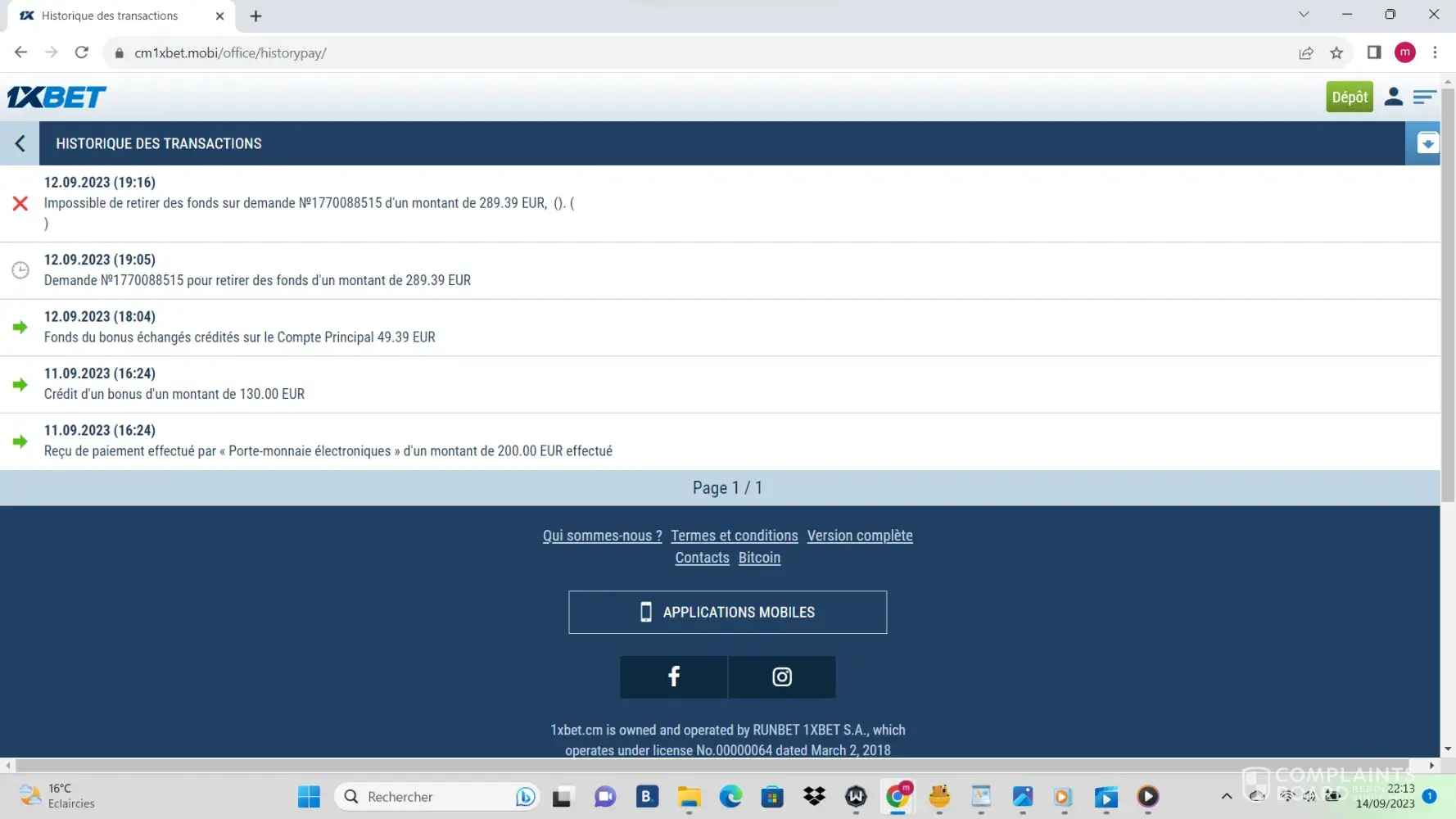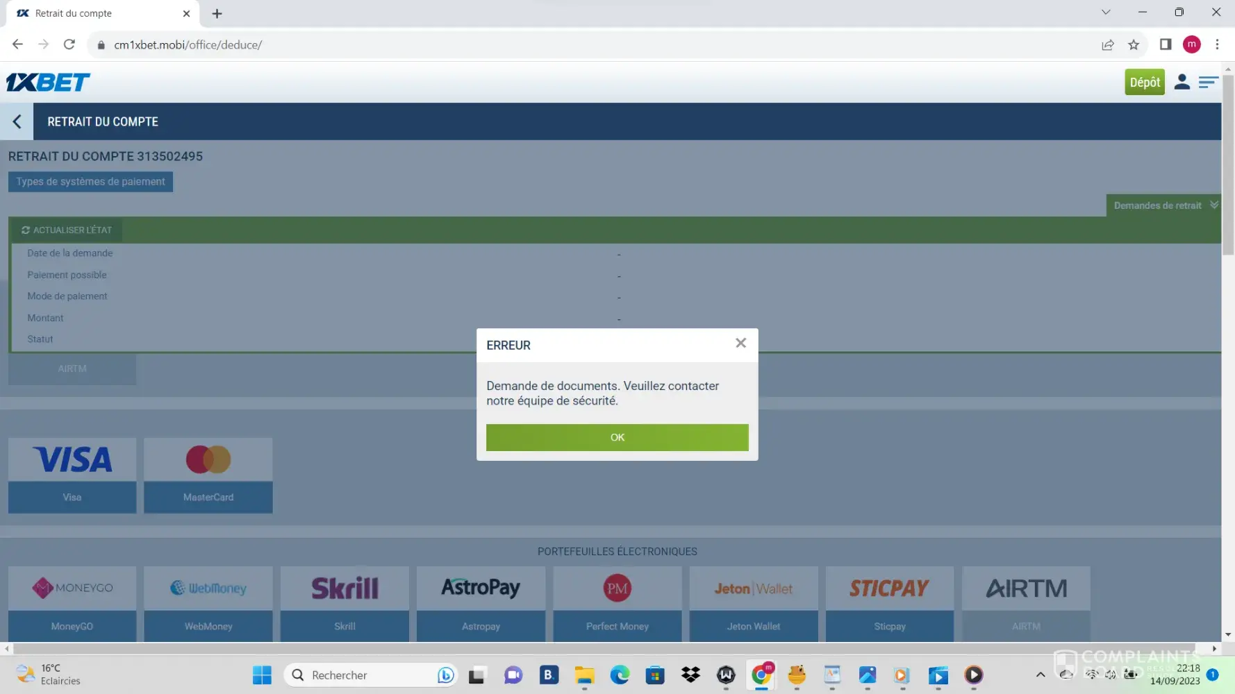 I've done a deposit on 14 /09/2023 , in my onexbet.in around 2.00 am .