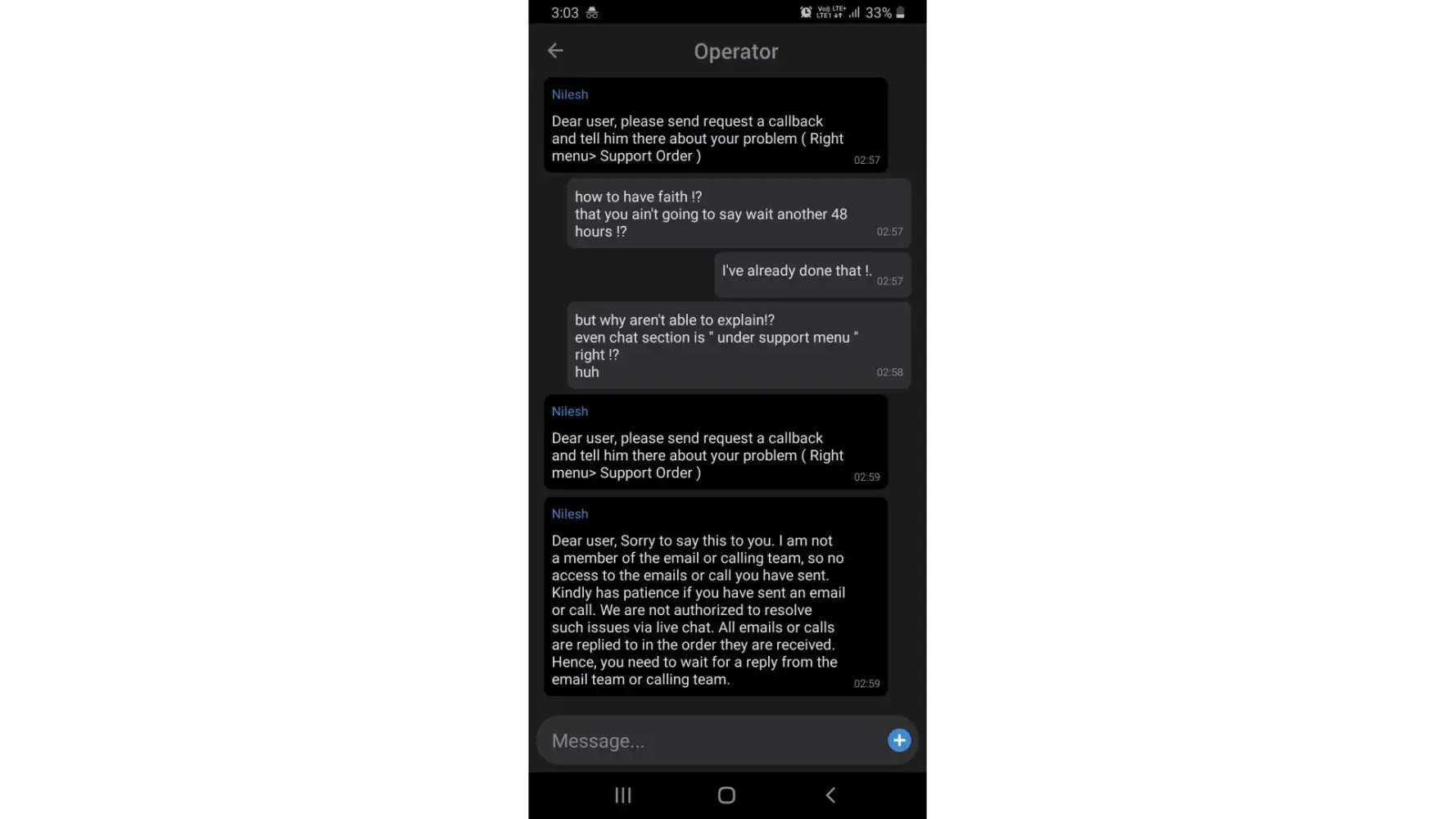 If the case isn’t as I described, you guys are just completely useless with helping people to withdraw and just trying to confront customers in a damn loop. Either way, the team is totally useless.