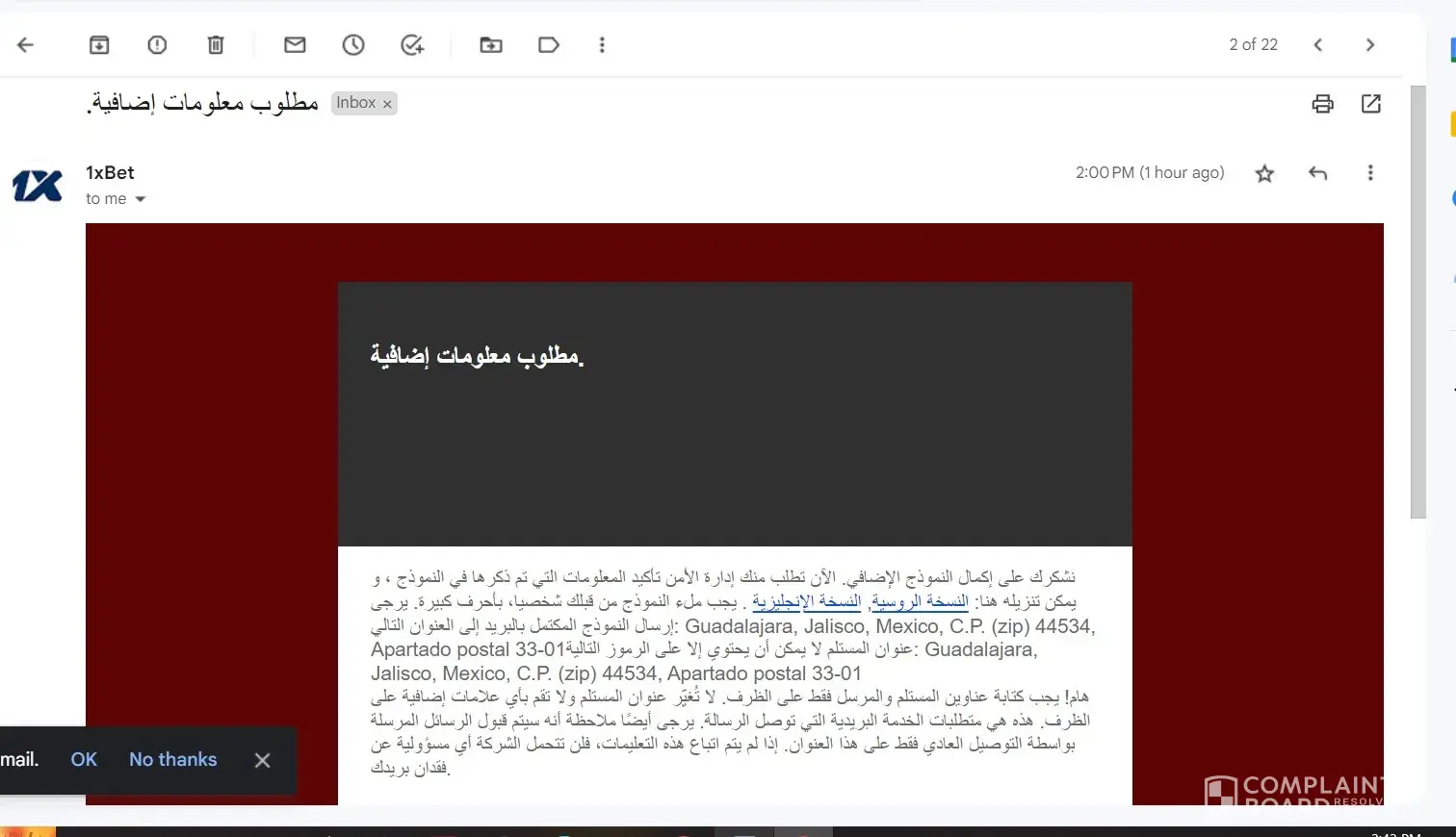 Subject: urgent: unresolved financial issues with 1xbet account - sent to contact emails