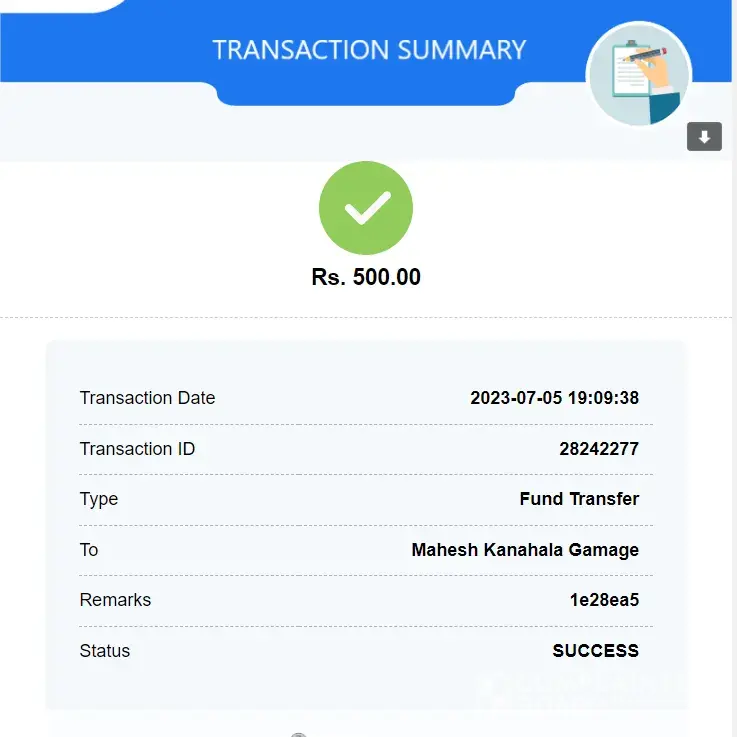 Amount : Rs.500 (LKR)