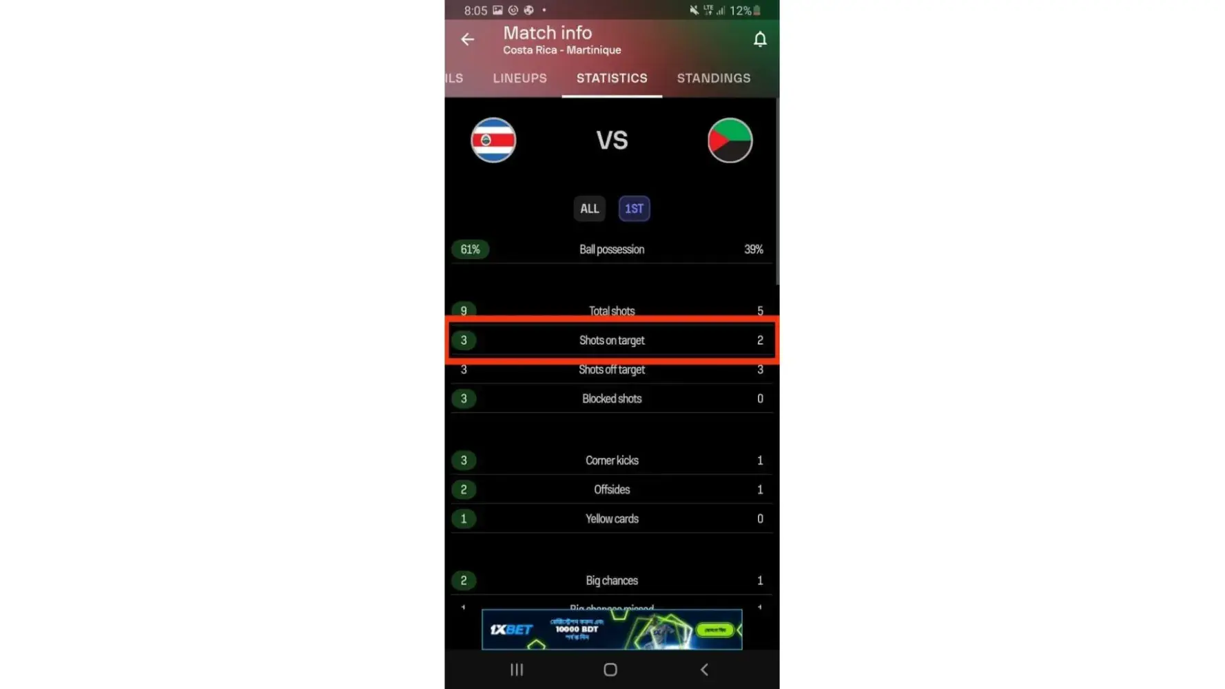 This is regarding bet slip [protected] in 1X bet. The team 1 ( Costa Rica ) have won the match by shots on target in 1st half. But due to some technical score update glitch it is showing as drawn and i lost the bet.
