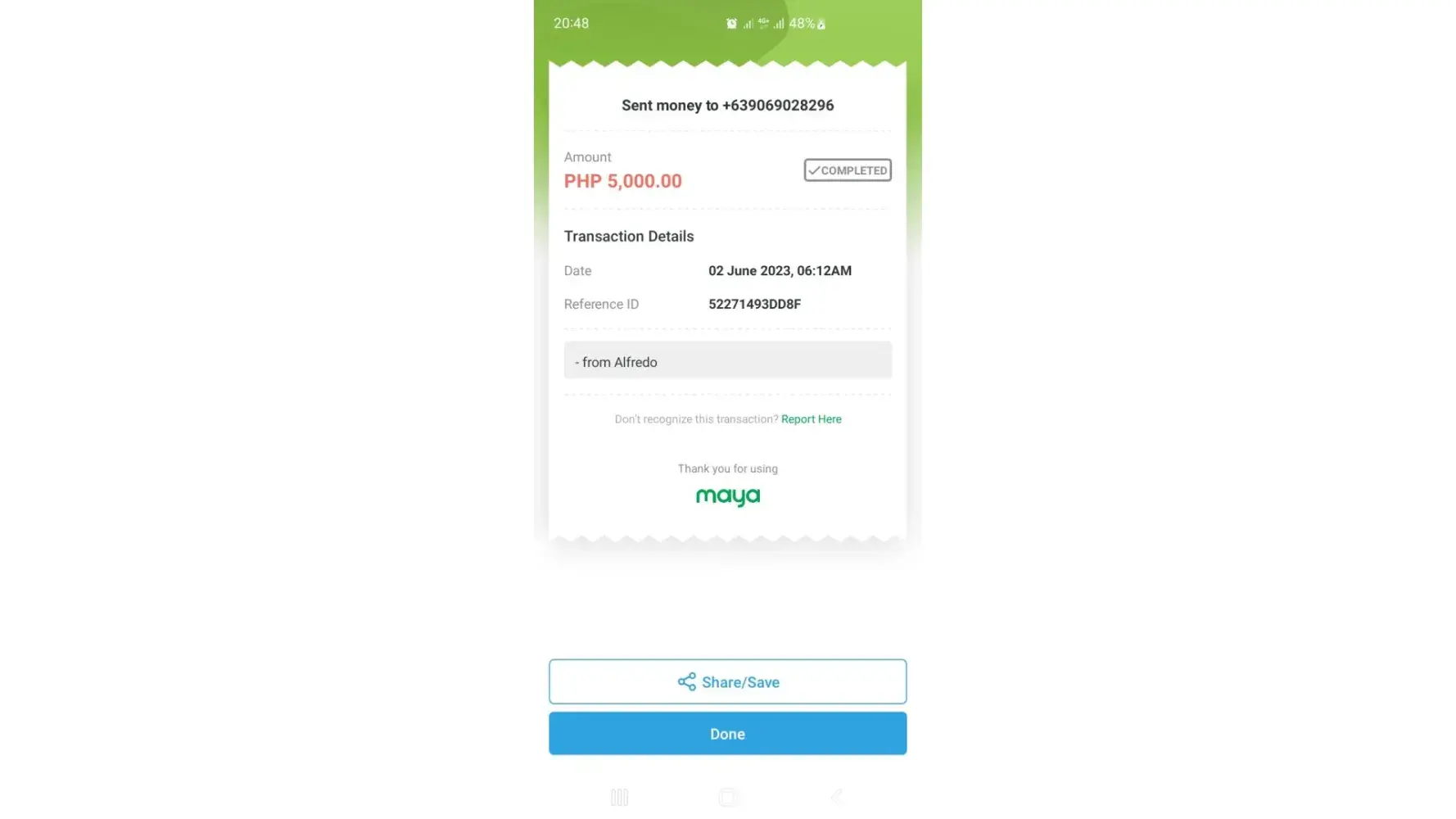 Amount deposited: Php 5,000.00