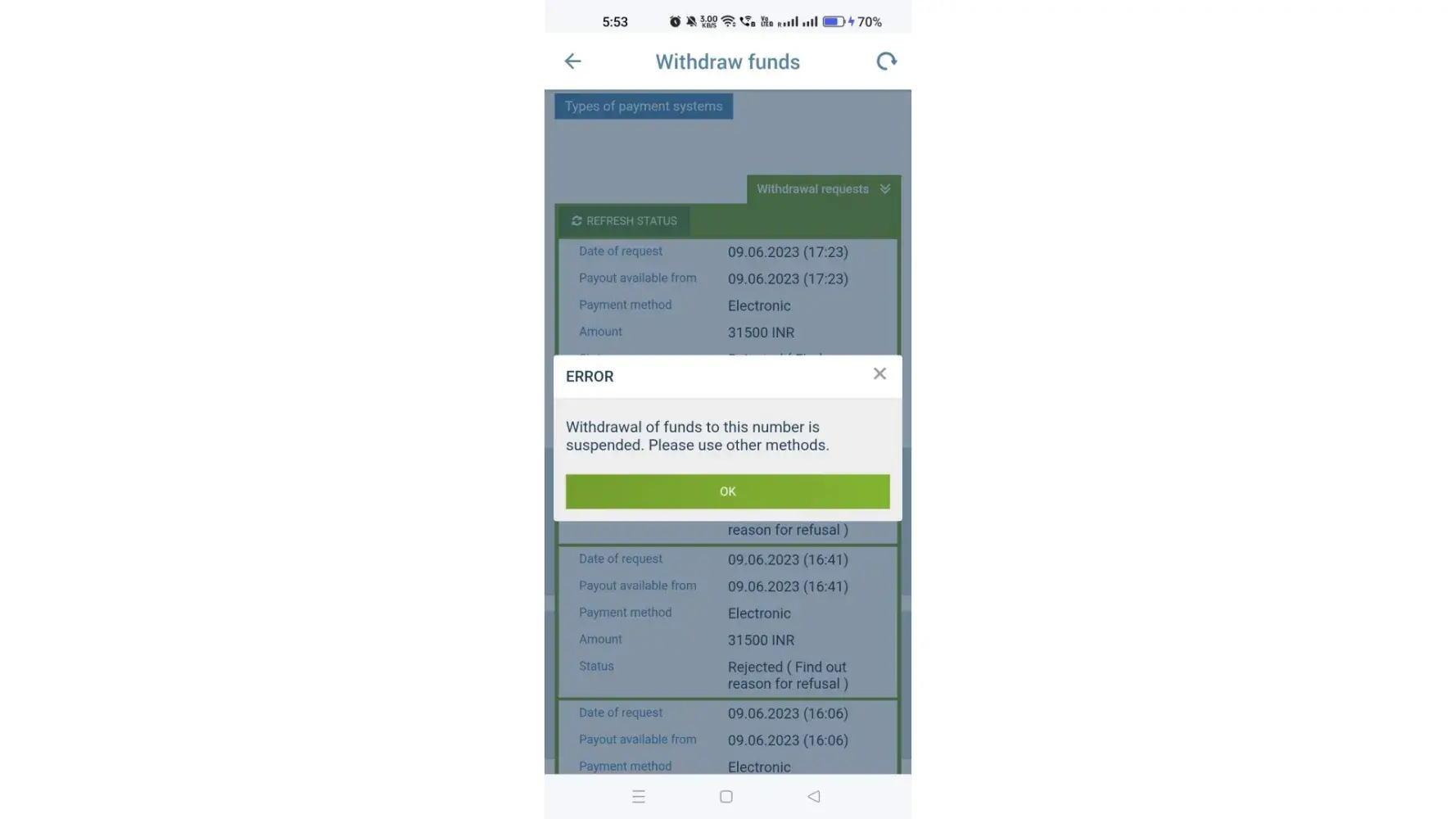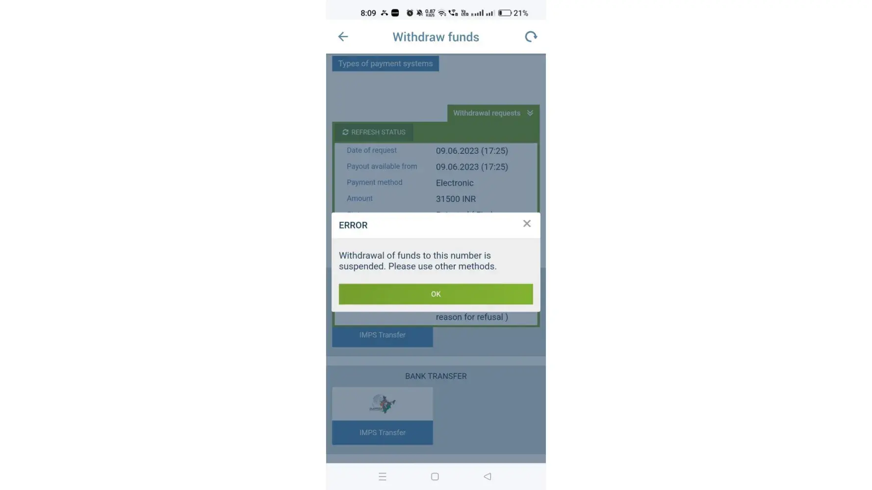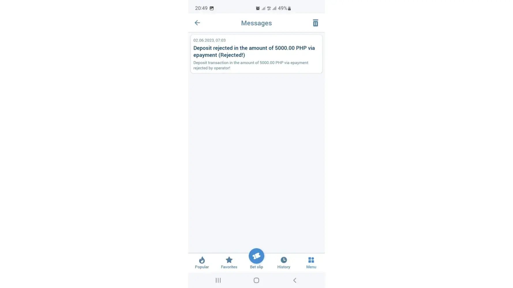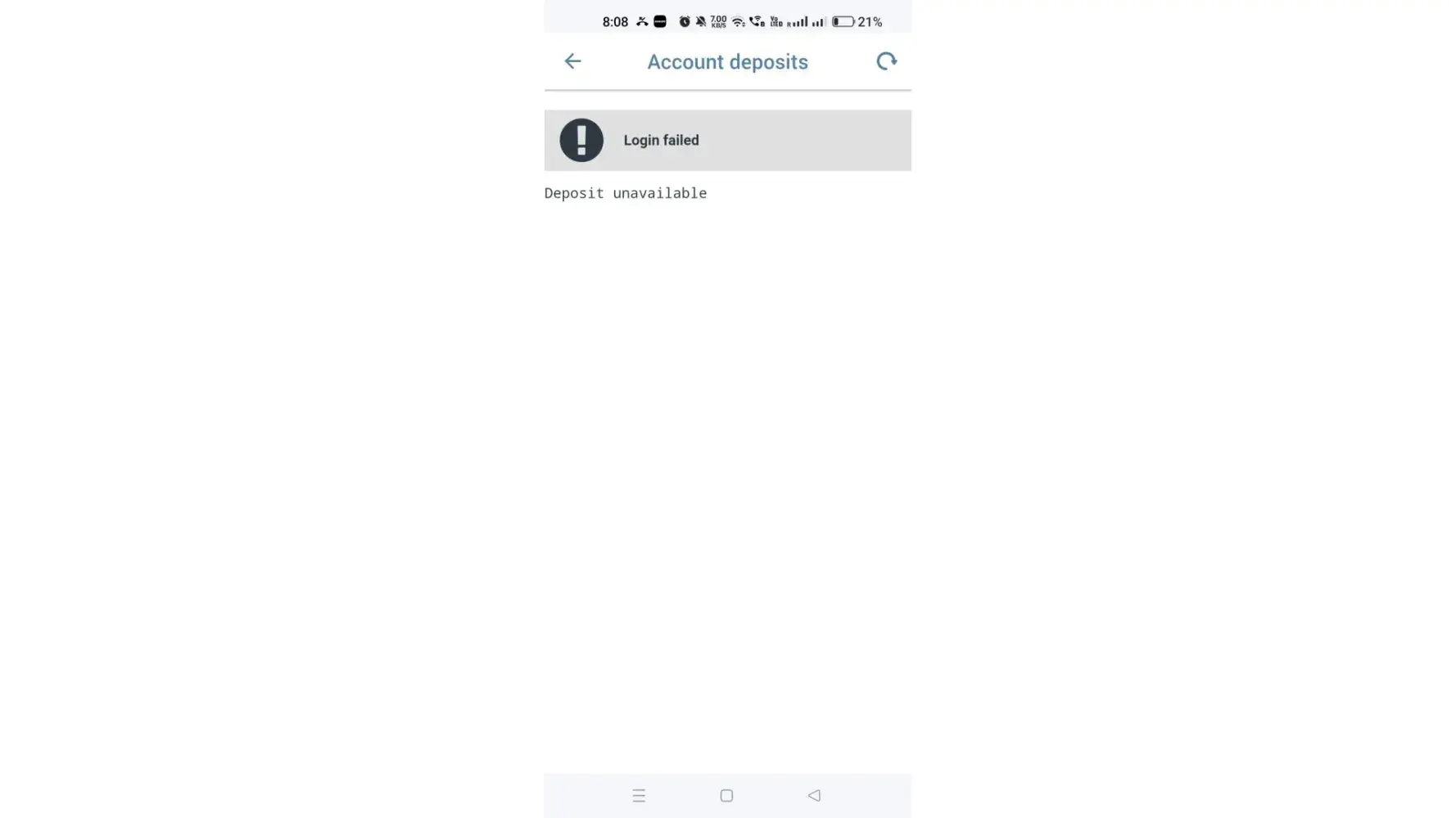 Deposit rejected by operator