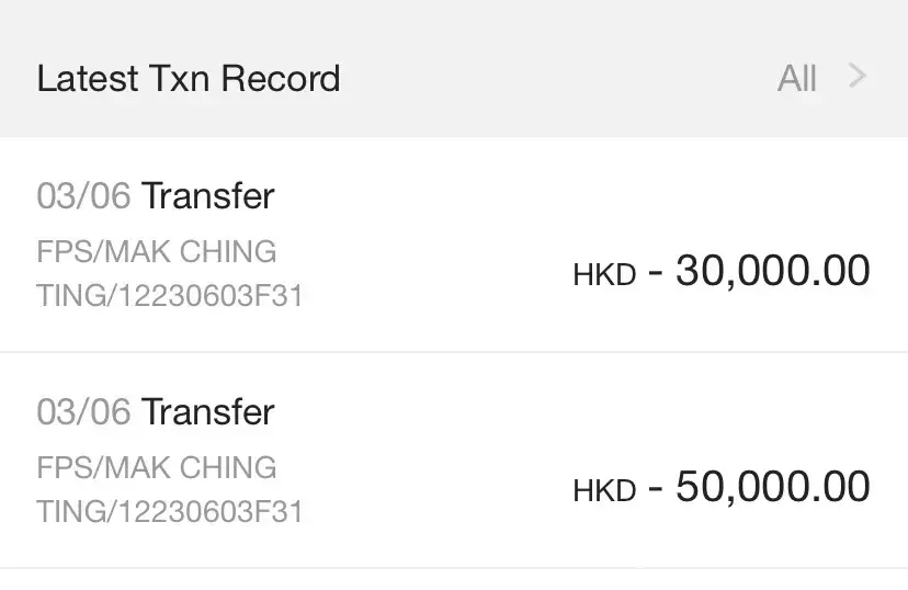 Transaction Amount: HKD50,000 / HKD30,000