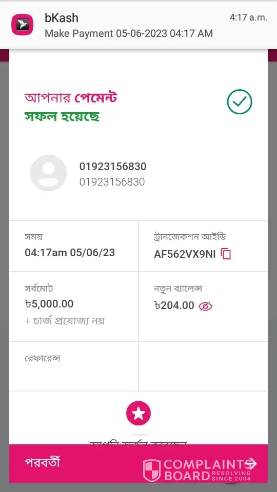 They again given merchant numbers for redeposit of the same amount of TK-10000/- and I do accordingly to this number +[protected] (Cashier agent) from my Bkash wallet number +[protected] and they said they will top-up my account by all amount at a time (10000+10000+10000)=Tk- 30000/ thousands within few minutes but still I am waiting.