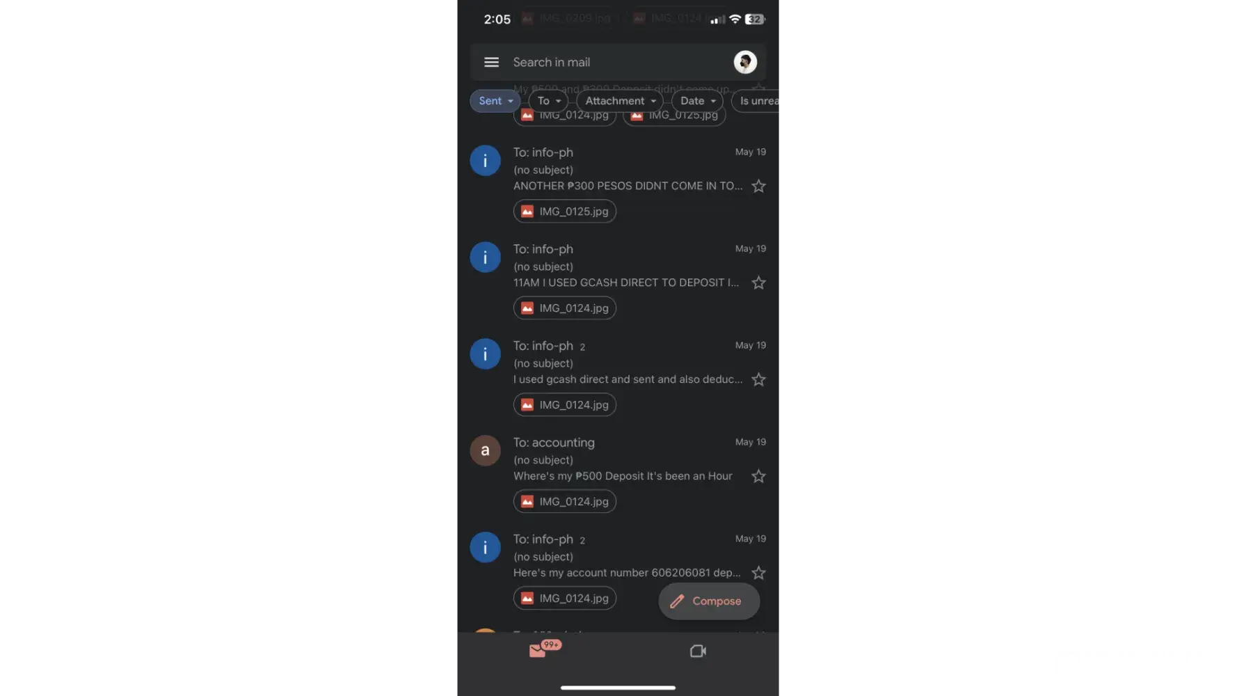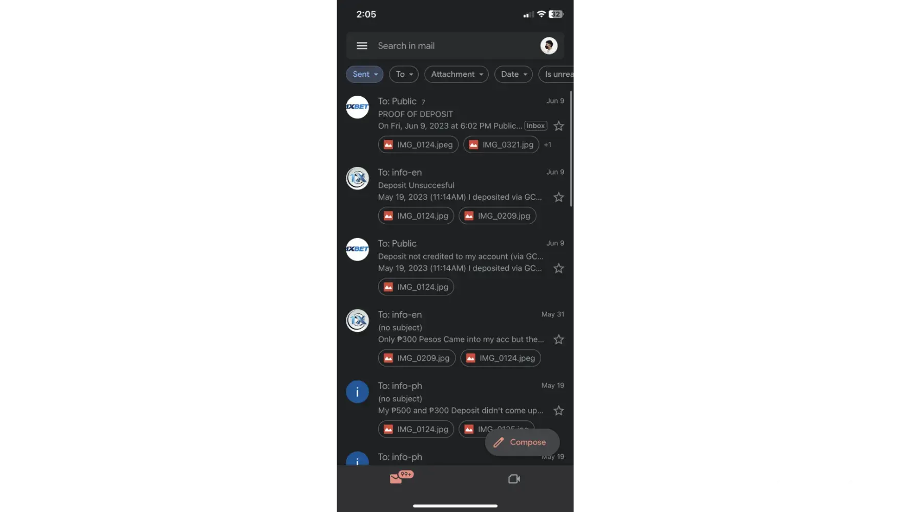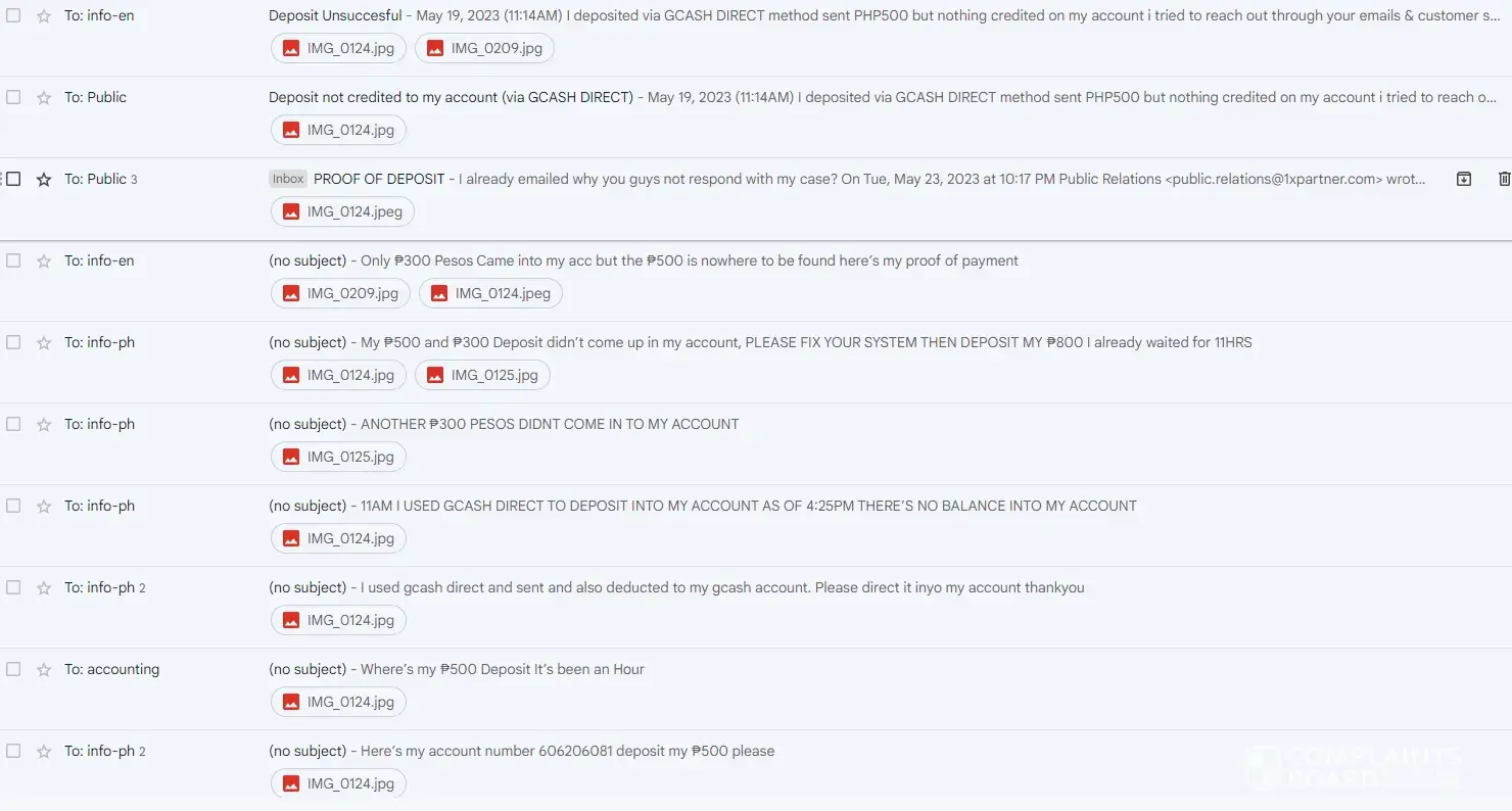 May 19, 2023 (11:14AM) I deposited via GCASH DIRECT method sent PHP500 but nothing credited on my account I tried to reach out through your emails & customer service but no one approaches me, I also filed a complaint in ComplaintsBoard but still nothing comes into my account this is the proof that I sent my PHP500 to one of your agents. You guys emailed me and told me that my transaction was successfully credited. If it is successfully credited as you said why there's no balance in my account? Can you tell me what is the account number that credited my deposit? And also you guys provided another email but no one responded into one of my emails