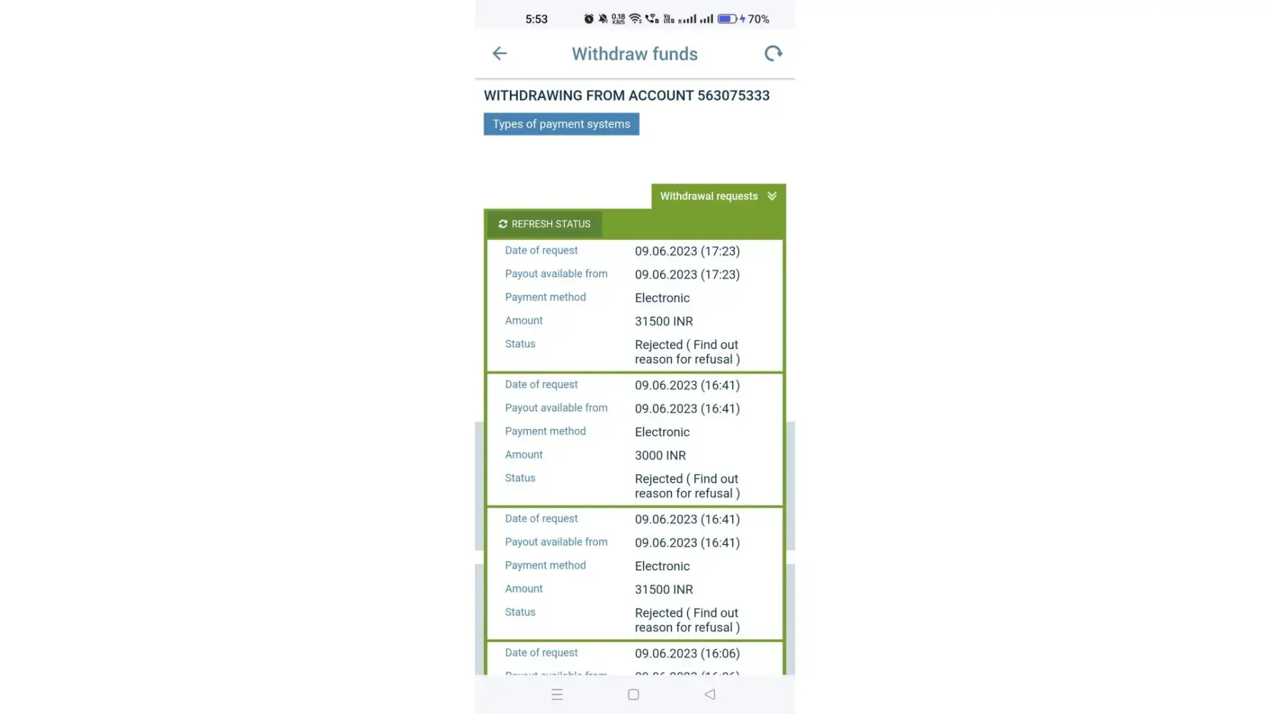 Out of the blue, I received a reply to my email stating that I can withdraw my money by creating a withdrawal request. However, every time I try to withdraw my funds, it gets rejected repeatedly. I provided them with proof of my rejected withdrawals, but they have not offered any solution. This is why I am submitting this complaint regarding my account verification.