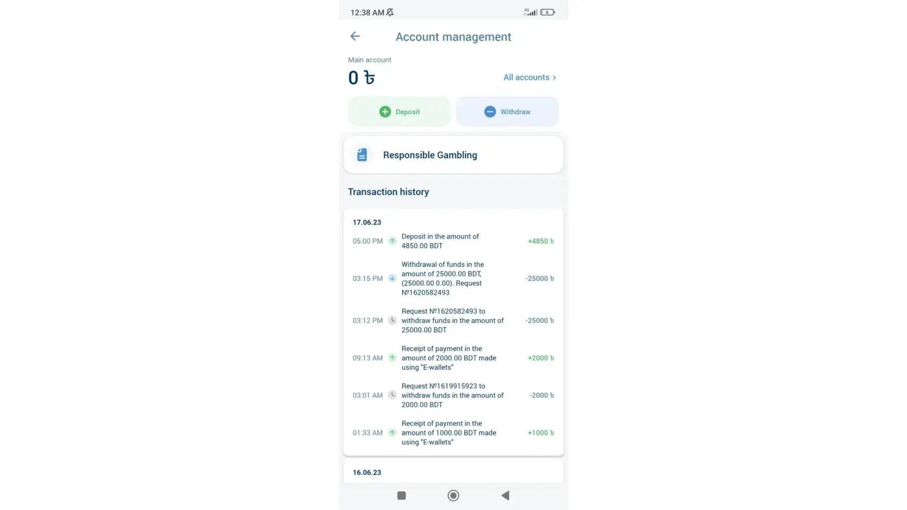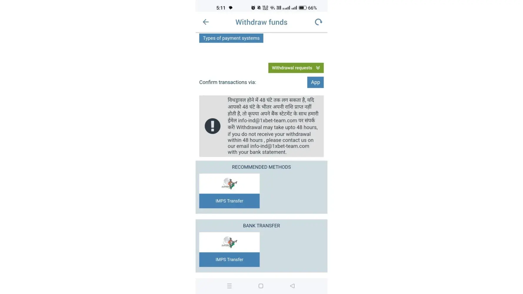 1XBET Transaction history Screenshot: BELLOW