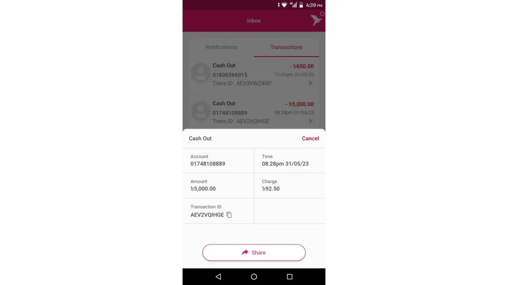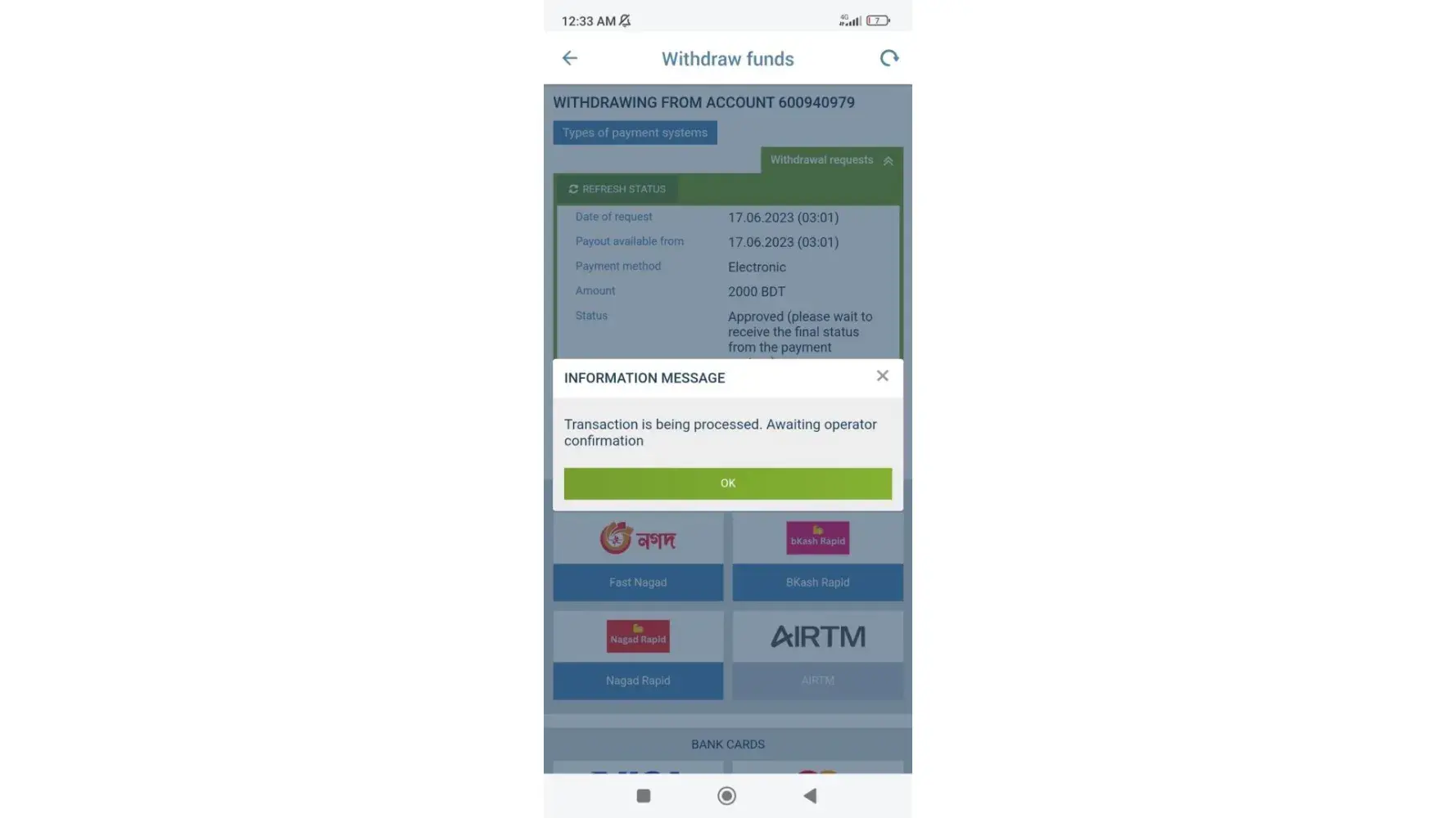For your consideration here I attached the app's screenshot, Bkash statement (highlighted) and video proof as well.