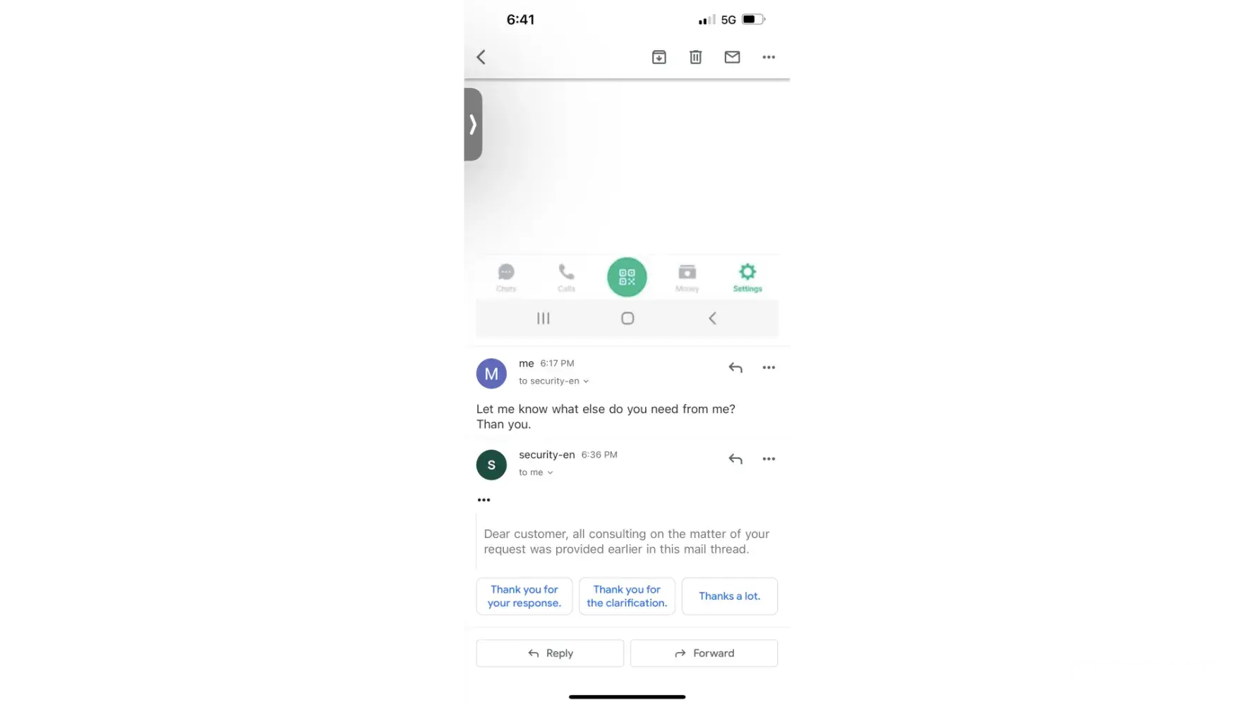 The reply from security team
