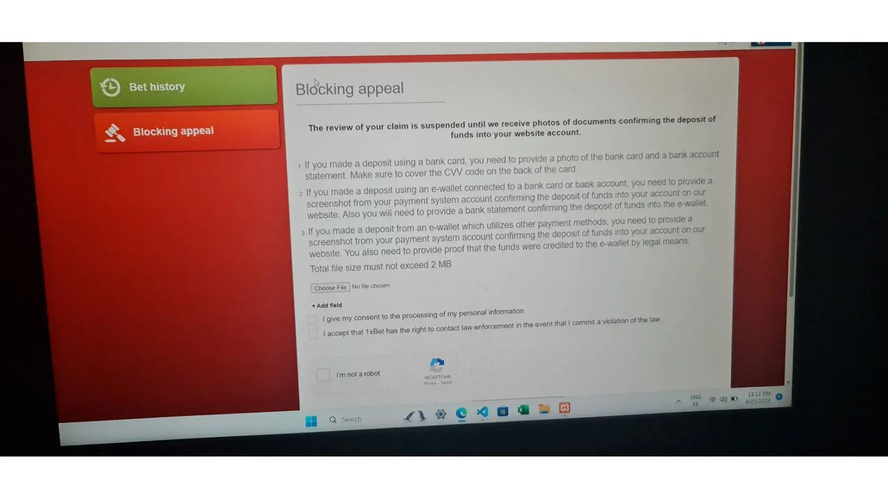 Block apeal problem , if you lose you are a good costumer and if you win you are a bad costumer , i picked 11football games from my country and put 30 usd on them and they won 3813 usd and when i tried to withdrawal the blocked me and asking for stuff that i didn't use like e-wallet wich i never used ,I've used only crypto, ig this is the way to scam people asking for unnecessary information and documents and reply late ( once every 3 days)