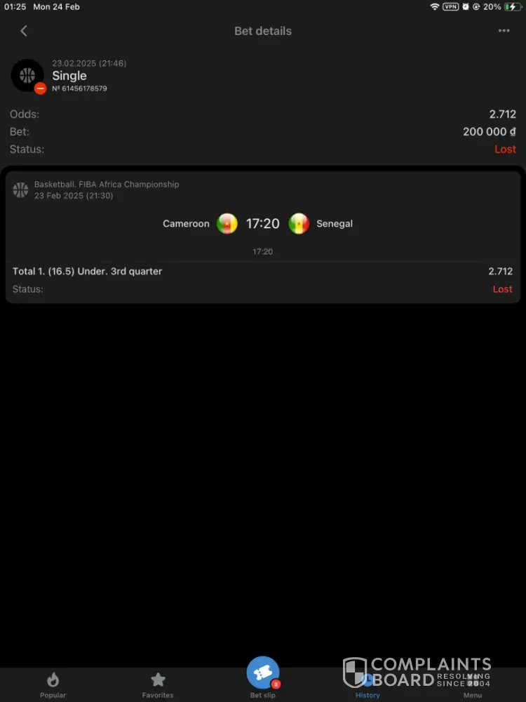 I saw volleyball match on application and i bet on it the last score was 23- 19 for team number one and i was bet on team number one the bet was on set number 3 suddenly i found the application changed score to be 19 -23 so its mean team number 2 will win mean make me from win to lose its not my fault so i contacted with customer service and they like always speaking rude and ignore and spam like robots , the problem this thing happen before but it was live match on screen and they make refund for me and said its employer fault because i won but this time they refused to make refund or make me won so i recommend you guys dont use this application they are band of scammers with wrost customer service in our planet after bet for 2 years active everyday i decided to exit from this scammer website and searching for trusted website so i dont recommend everyone with 1xbet and if you have another application i can trust on please let me know