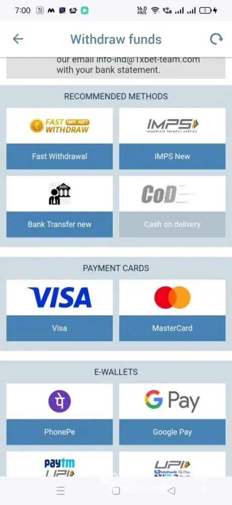 1Xbet give the other option to withdrawal the money.
