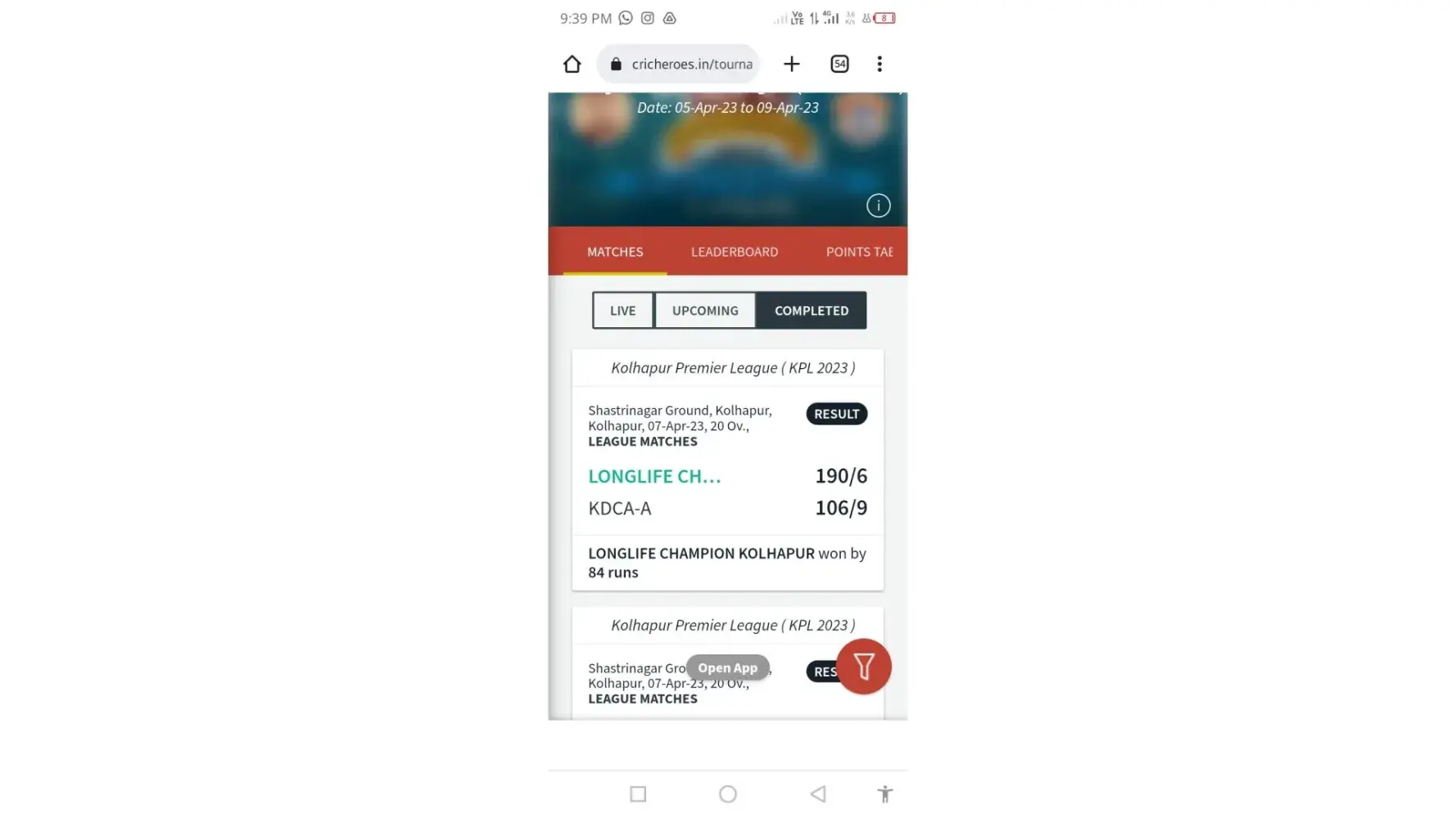please check my link now https://cricheroes.in/scorecard/6361405/Kolhapur-Premier-League-(-KPL-2023-)/LONGLIFE-CHAMPION-KOLHAPUR-vs-KDCA-A